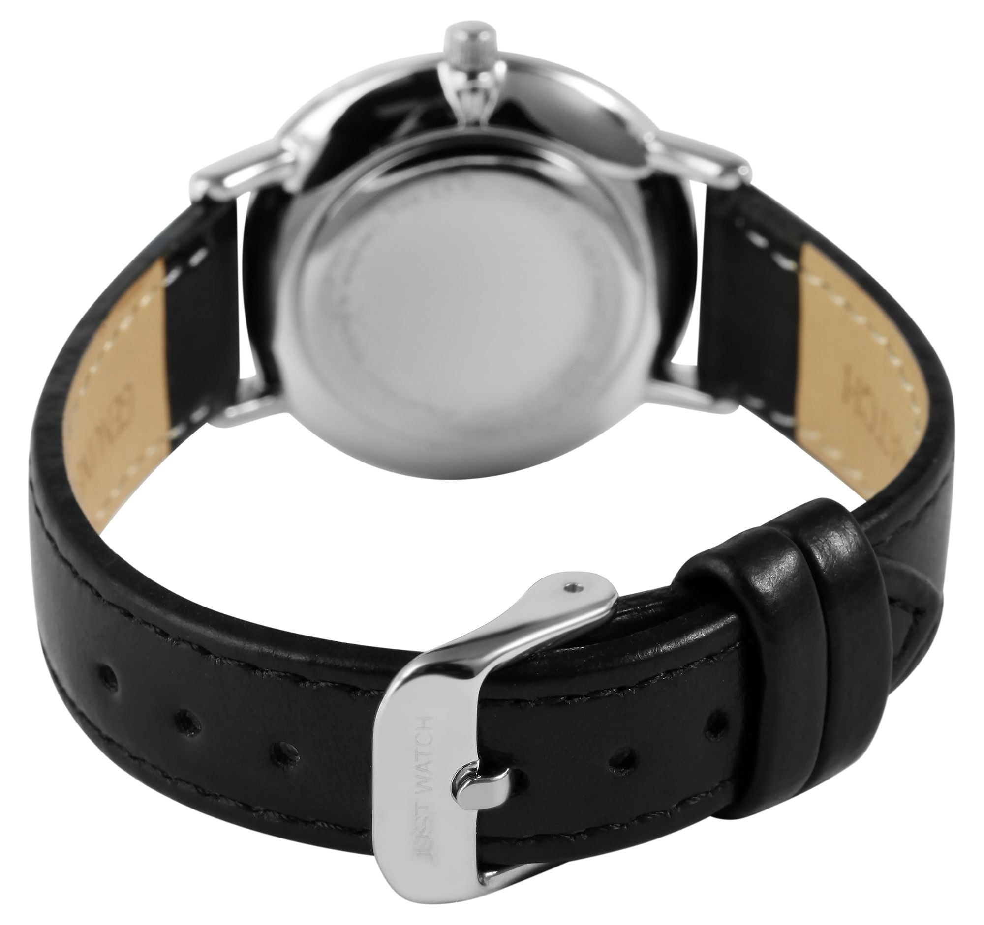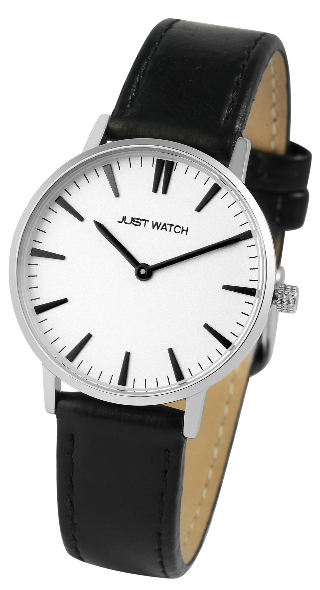 De analoge damespolshorloges met 2 wijzers van het merk Just Watch hebben een hoogwaardig kwartsuurwerk. De hoogwaardige leren en Milanese bandjes hebben een lugbreedte van 16 mm en kunnen worden geopend en gesloten met een eenvoudig te gebruiken sluiting. De leren banden worden geopend en gesloten met een gesp en de Milanese banden met een roestvrijstalen haaksluiting. De totale lengte van de leren bandjes is 23 cm en die van de Milanese bandjes 22 cm. De metalen kast met mineraalglas heeft een diameter van 33 mm en een kasthoogte van 6,5 mm. De achterkant van de kast is, net als de Milanese bandjes, gemaakt van roestvrij staal. Het horloge heeft ook een waterdichtheid van 3 bar. De wijzerplaat is eenvoudig gehouden en de wijzers en indexen passen goed bij de algehele look van het horloge. Het uurwerk maakt indruk met zijn eenvoudige elegantie en kan op verschillende manieren worden gecombineerd.