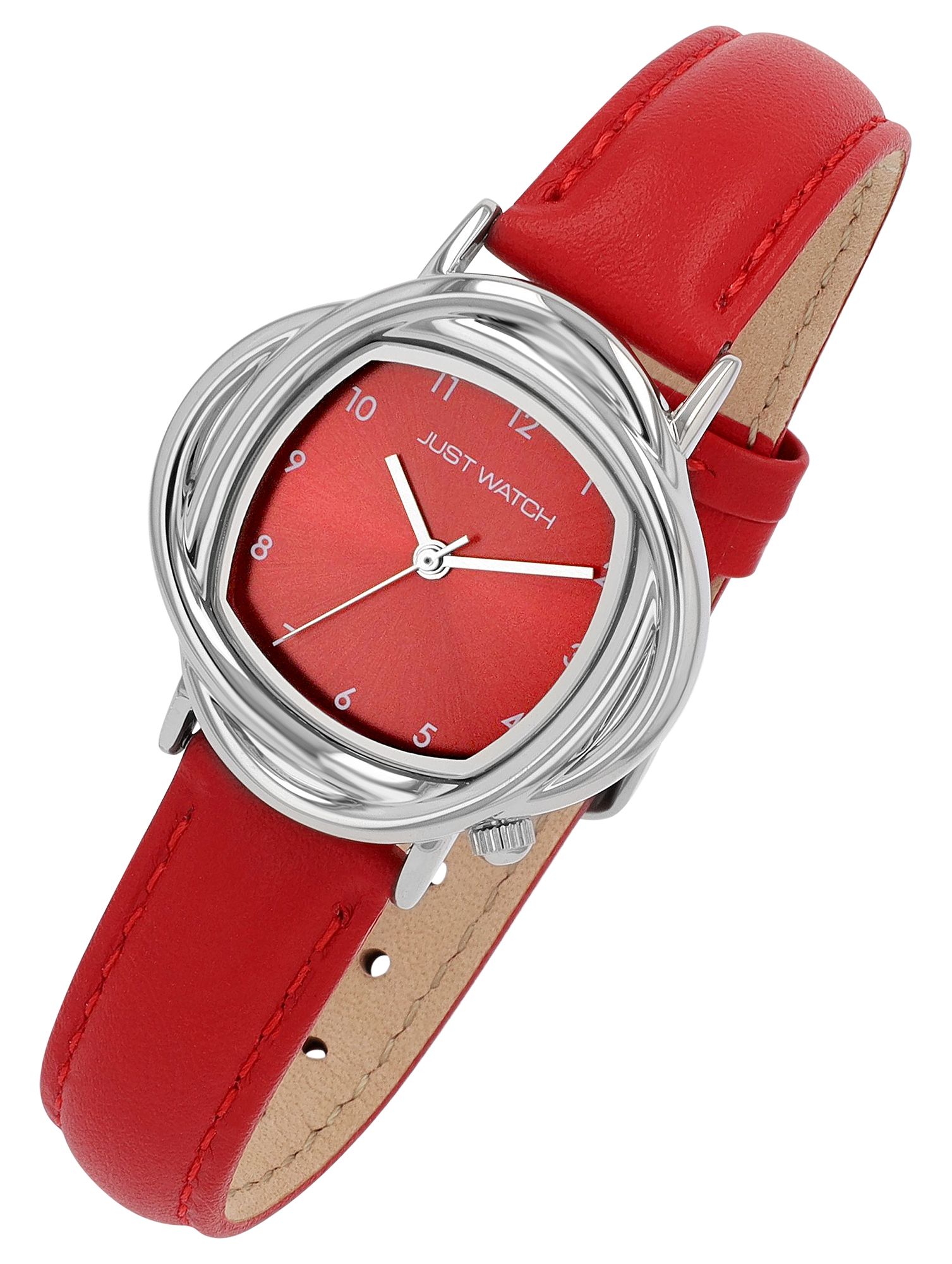 Productinformatie "Just Watch Damenuhr "Antoni" mit Lederband, kurviges Gehäuse, rot"