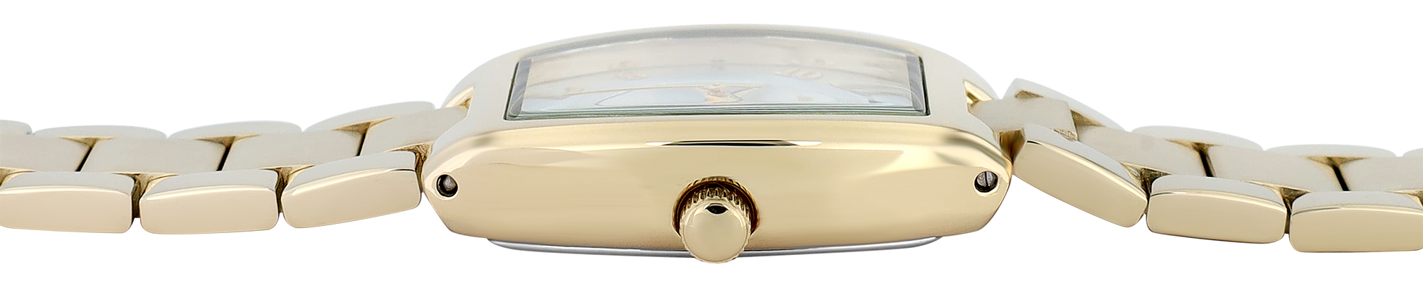 Dit elegante dameshorloge in een minimalistisch tonneau-design maakt niet alleen indruk door de populaire kastvorm, maar ook door het gebruik van hoogwaardige materialen bij de productie. Een nauwkeurig quartz uurwerk binnenin wordt beschermd door stevig mineraalglas en een roestvrijstalen achterkant van de kast. De fijne schakelarmband, 20,6 cm lang en 15 mm breed, met bijzonder grote geborstelde middenschakels, is ook gemaakt van hypoallergeen, duurzaam roestvrij staal.