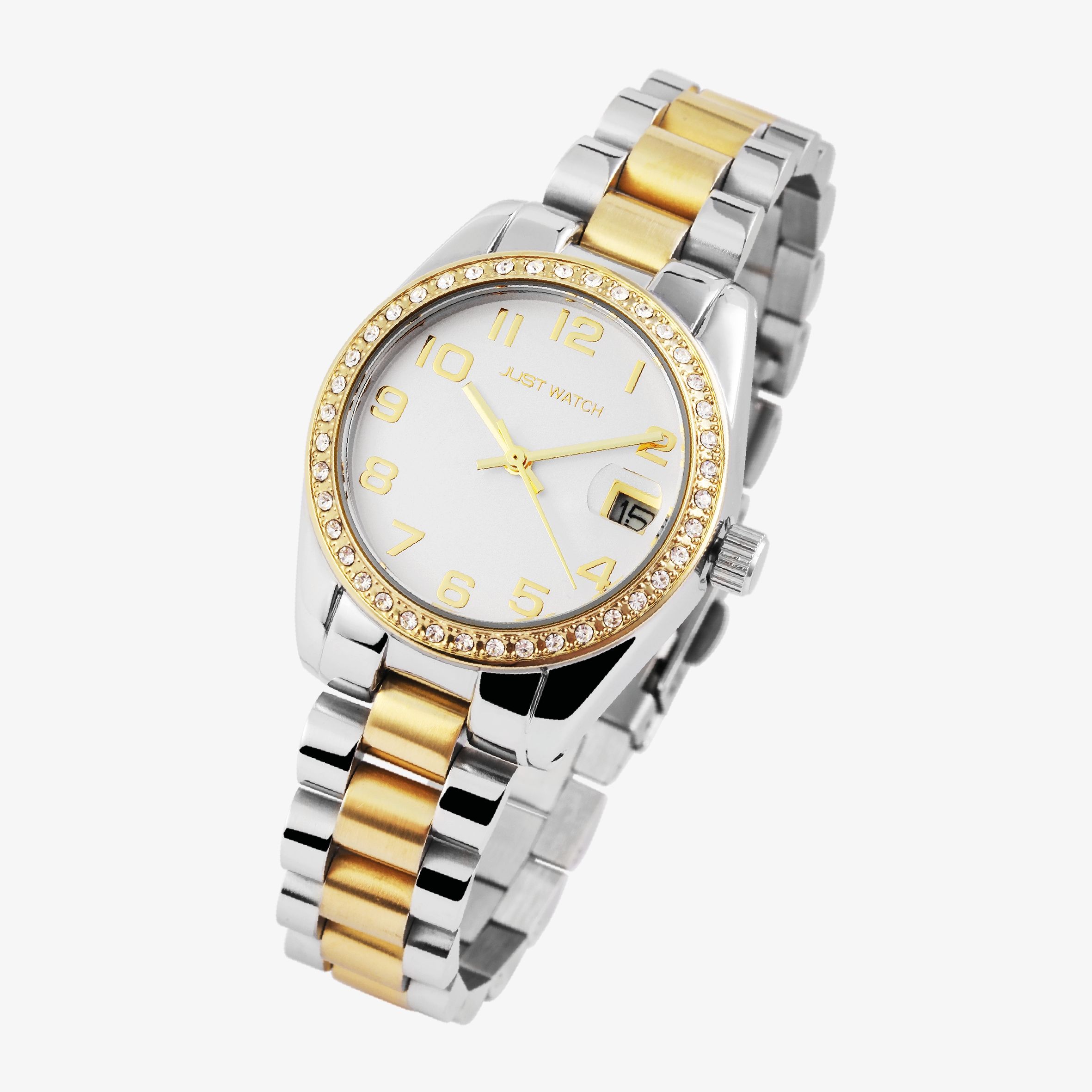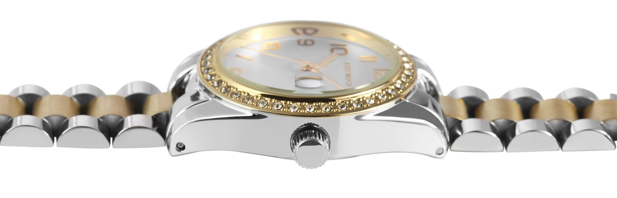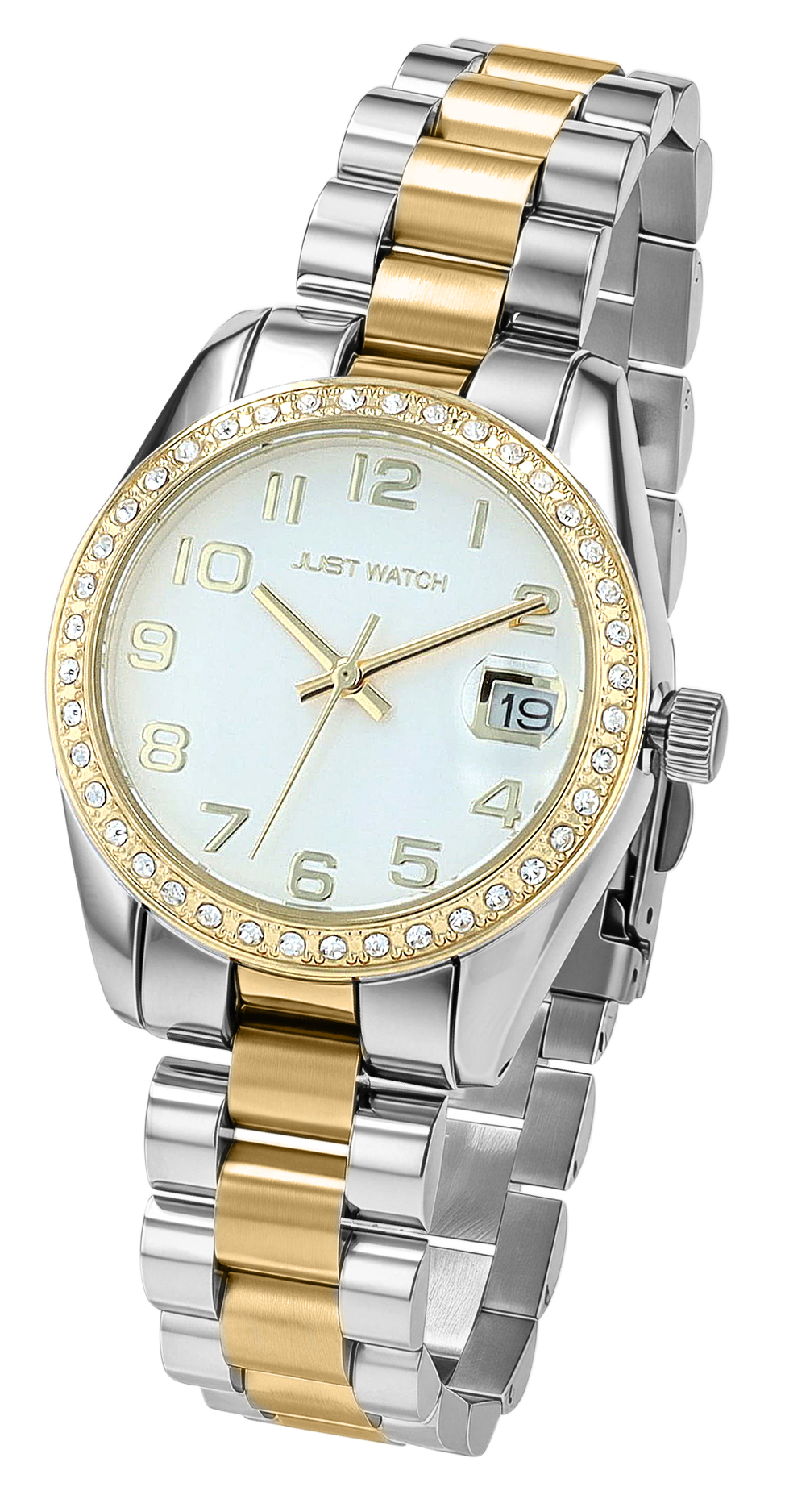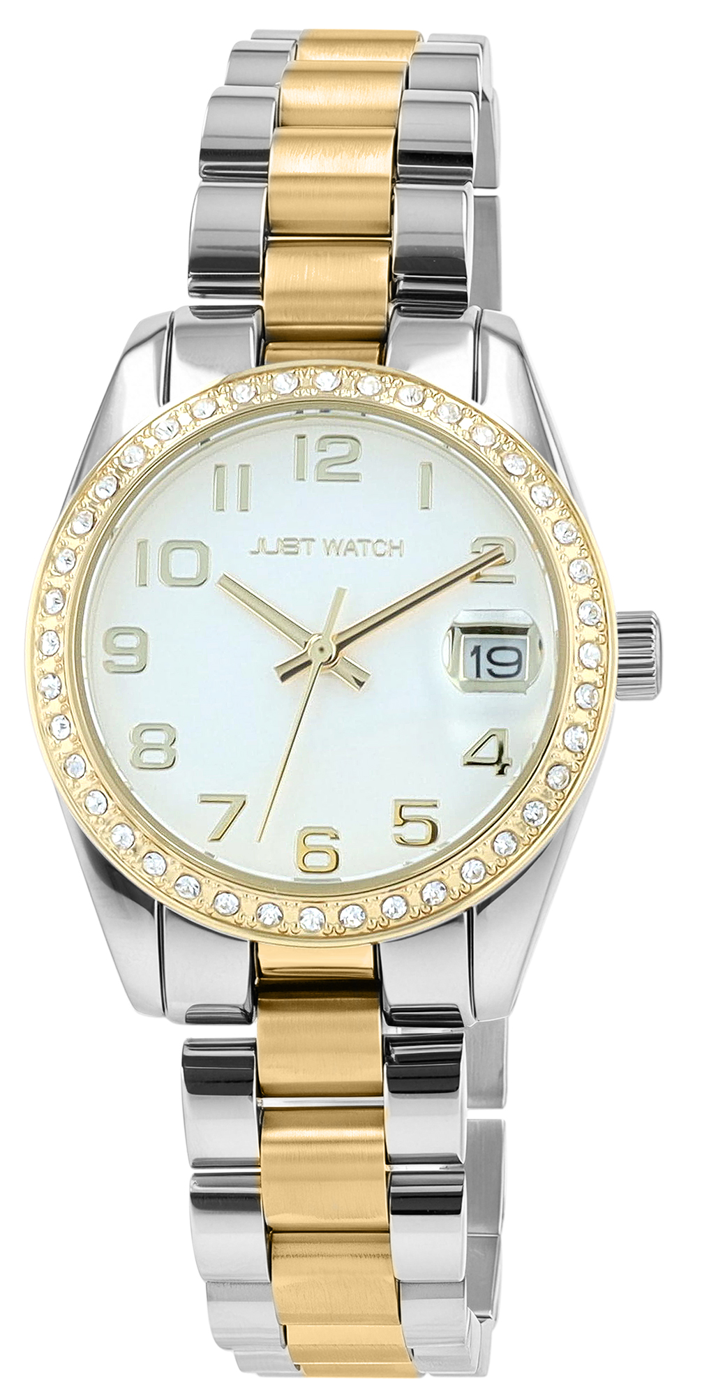 Productinformatie "Just Watch Damenuhr "Emmi", Edelstahlband, Ø 33 mm, bicolor (silberfarben+goldfarben)/ silberfarben"