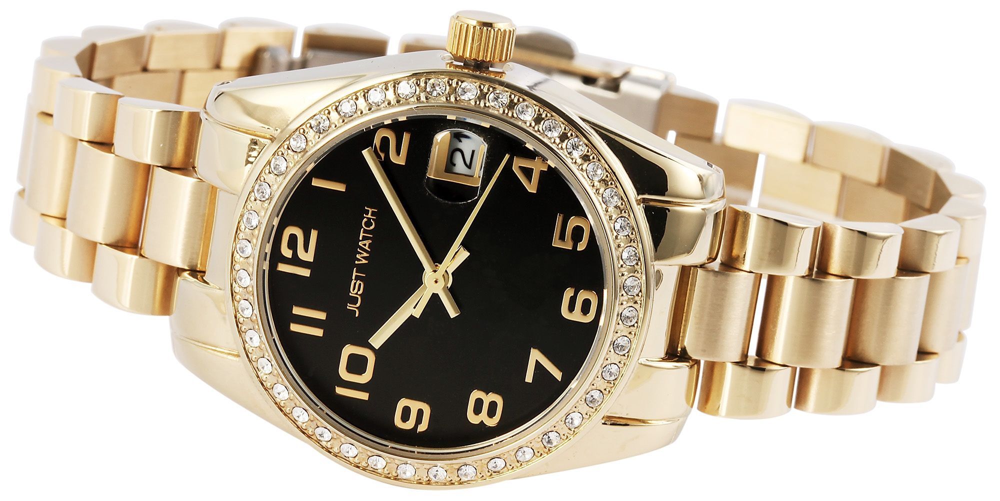 Productinformatie "Just Watch Damenuhr "Emmi", Edelstahlband, Ø 33 mm, goldfarben/schwarz"