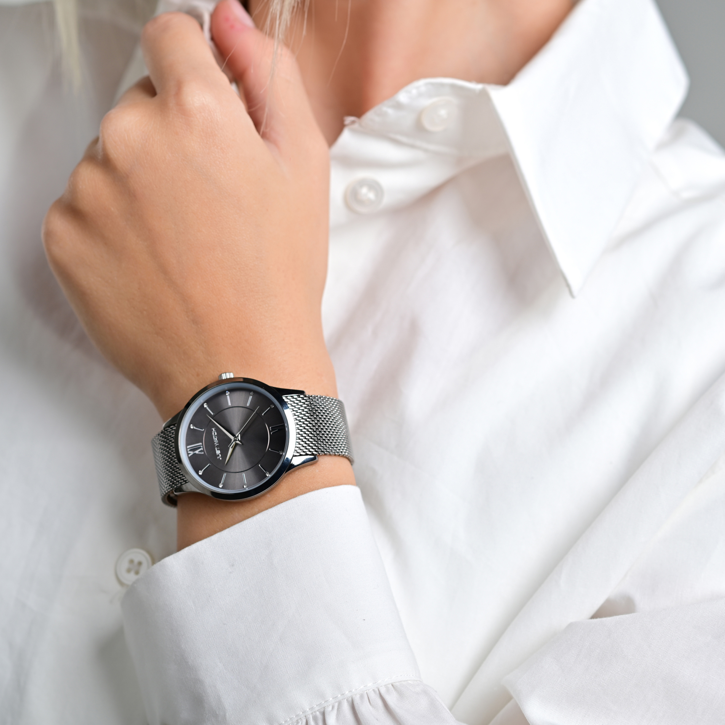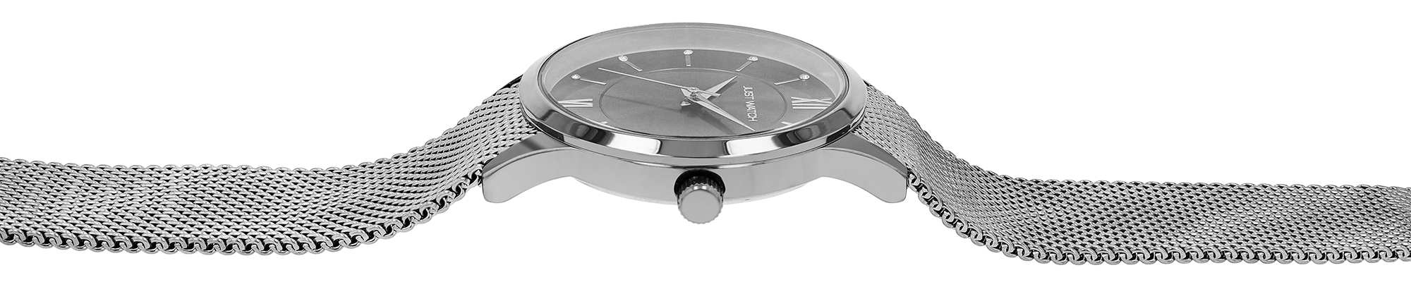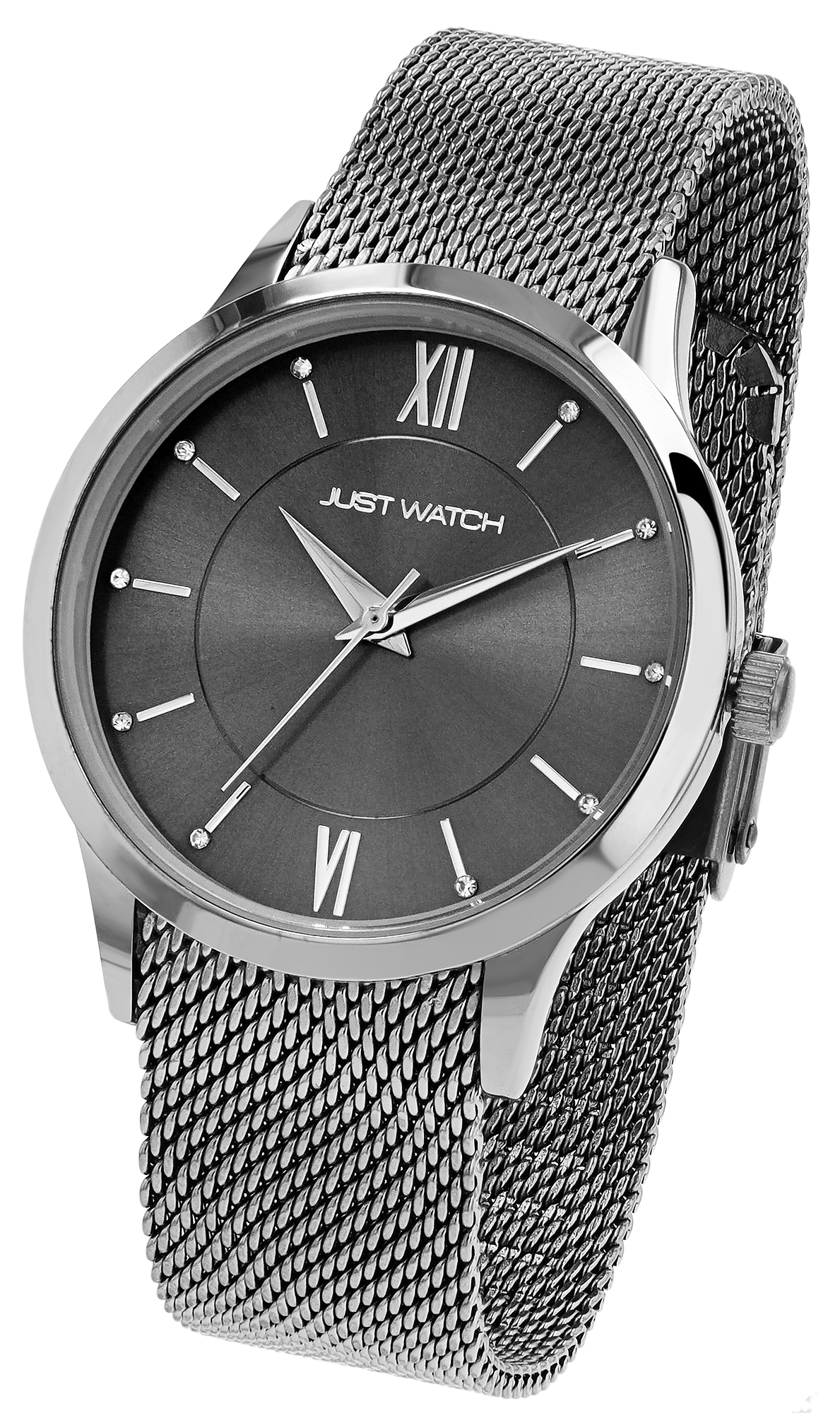 Productinformatie "Just Watch Damenuhr, Milanaisearmband, Edelstahl, anthrazit"