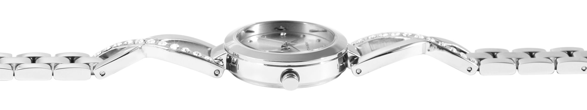 De minimalistische en duidelijke wijzerplaat met puntindex is gemakkelijk af te lezen. Elegante similli steentjes schitteren op de 3, 6, 9 en 12 uur posities en geven het horloge een luxe touch.