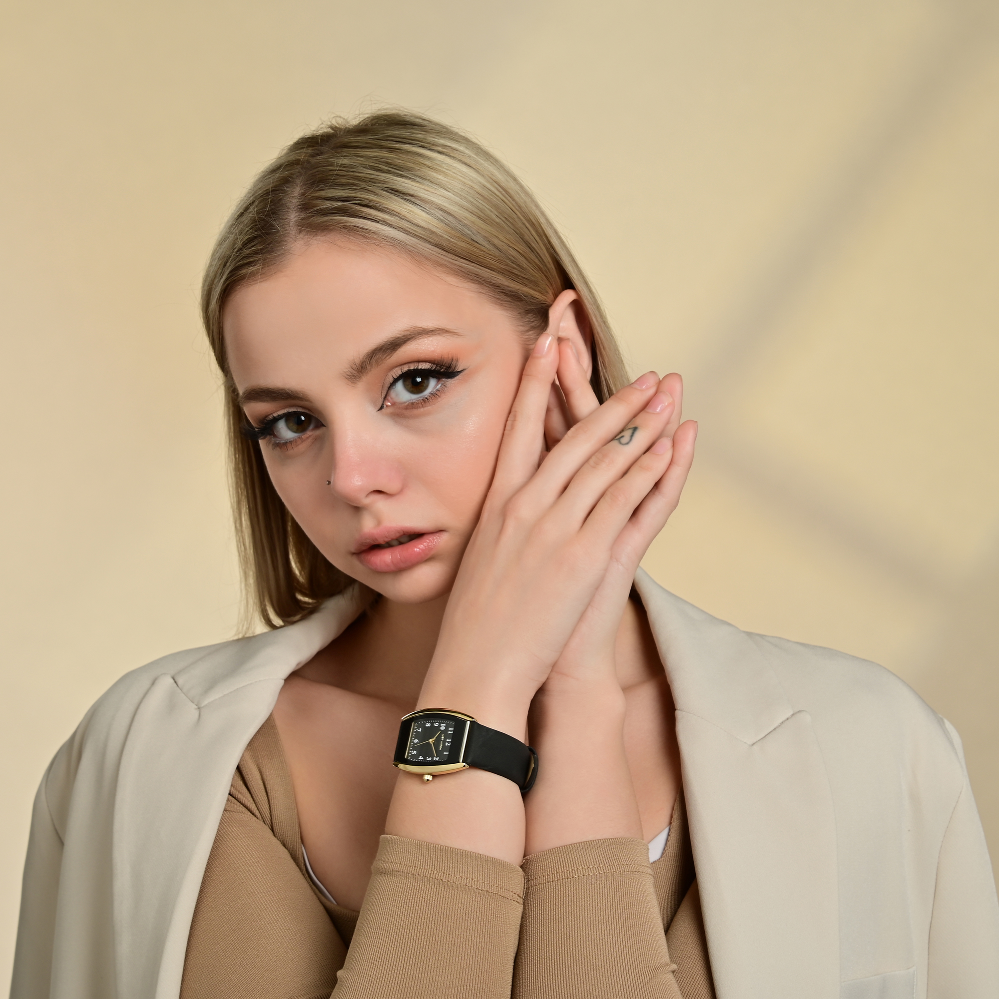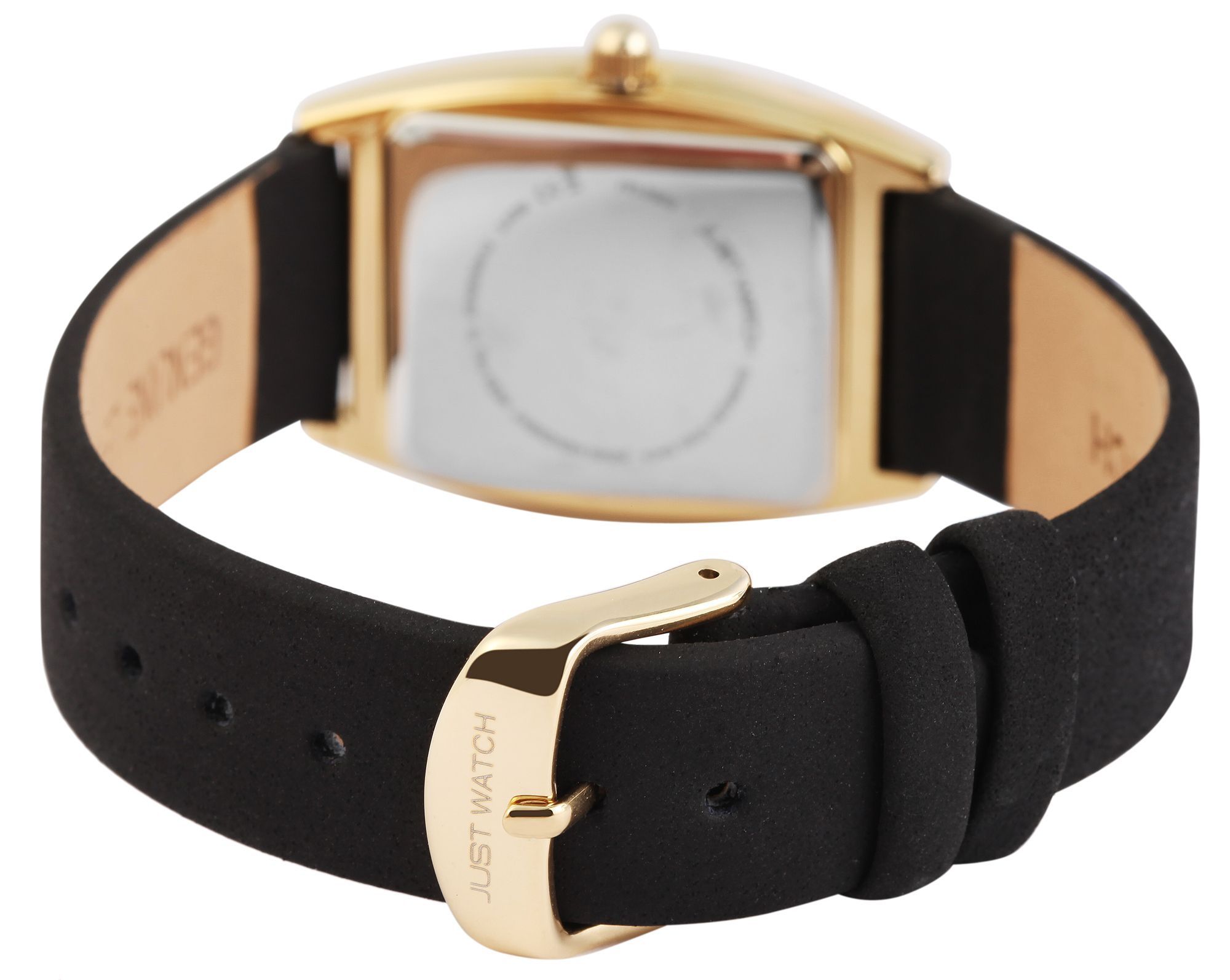 Productinformatie "Just Watch Damenuhr mit Echtlederarmband, Tonneau, schwarz/ goldfarben"