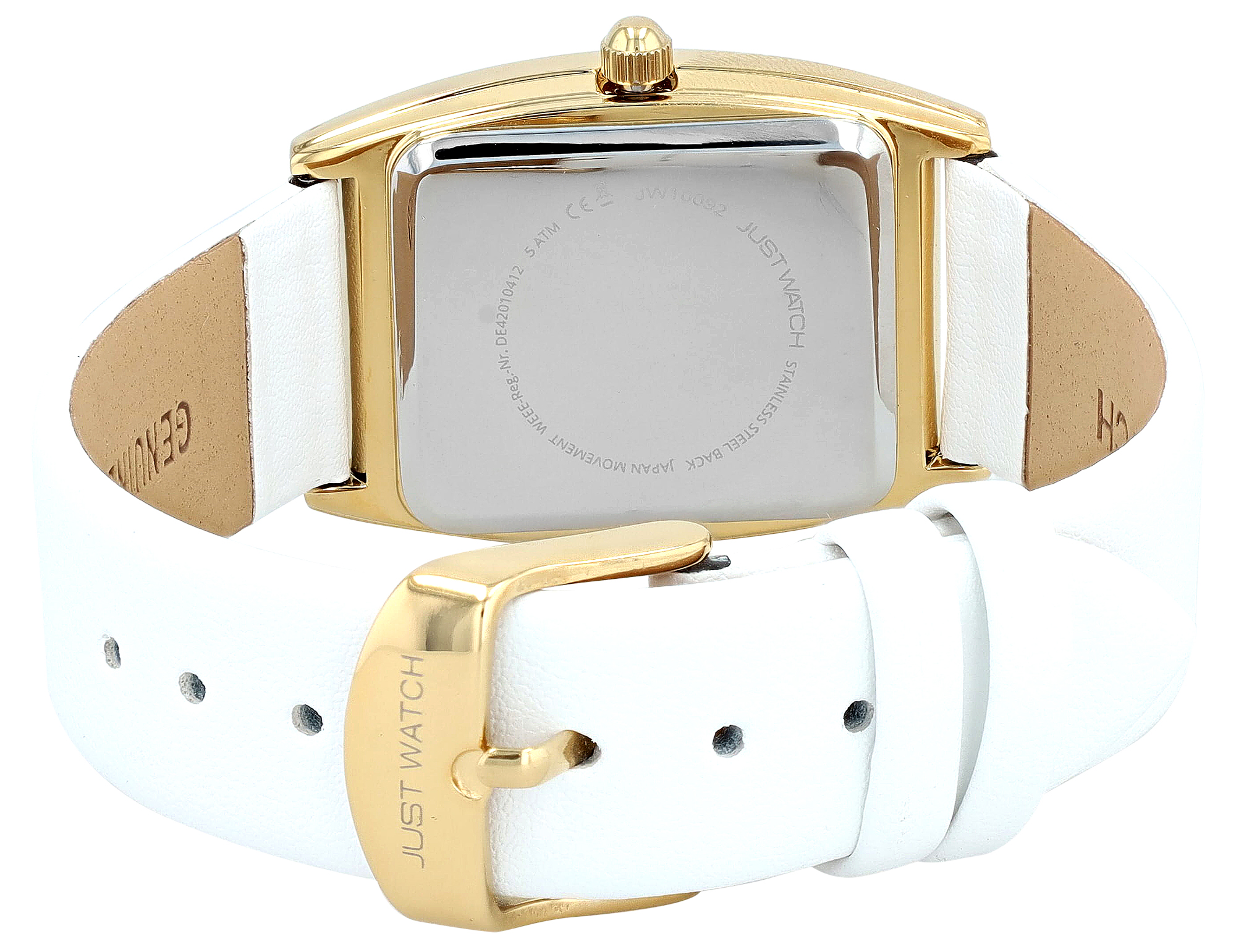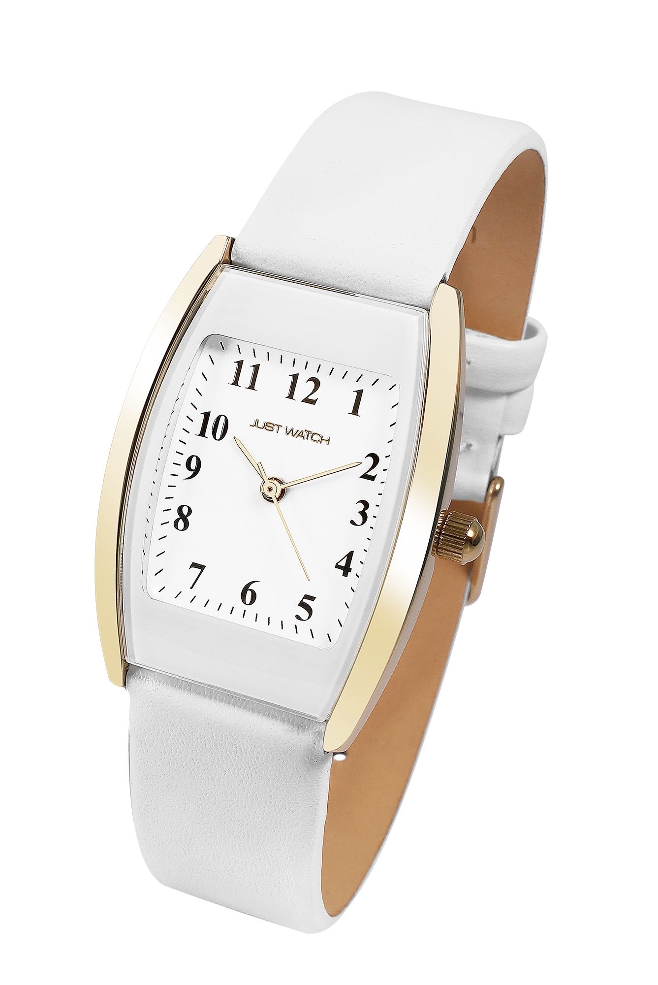 Productinformatie "Just Watch Damenuhr mit Echtlederarmband, Tonneau, weiß/ goldfarben"