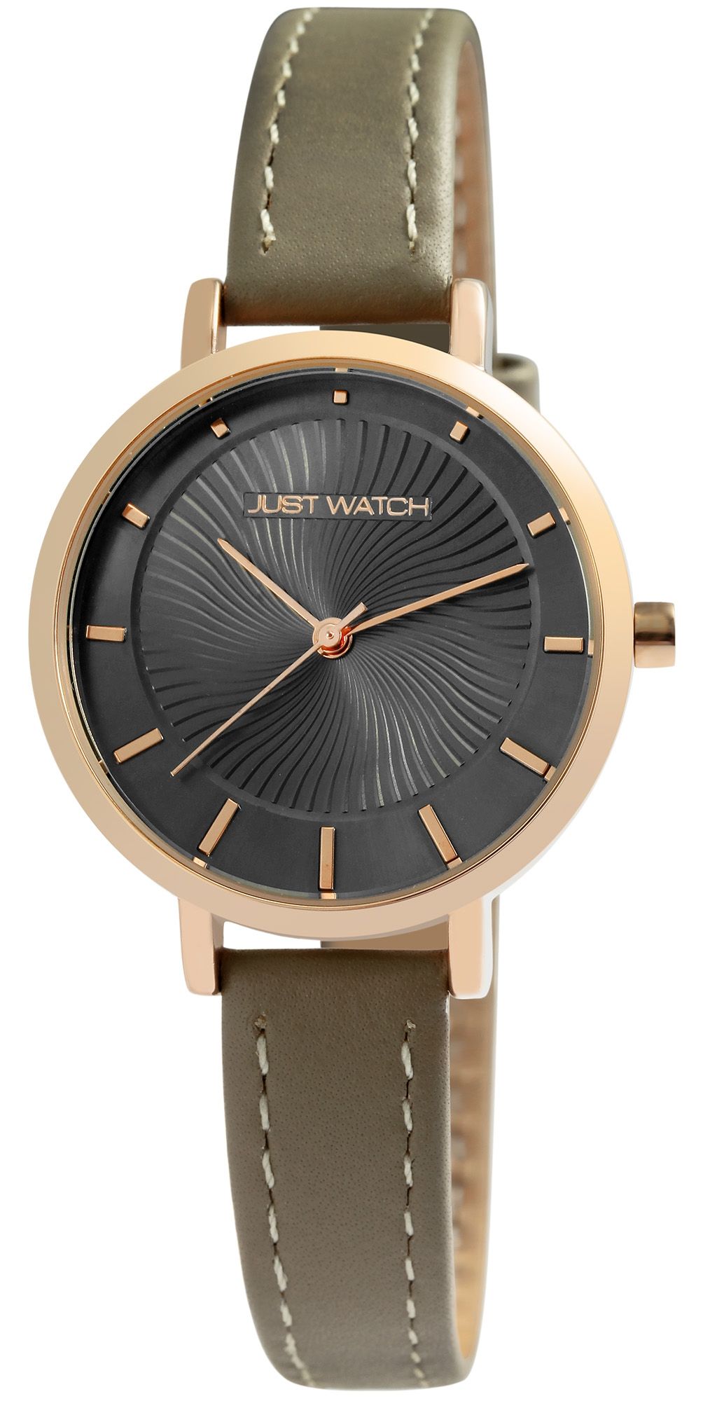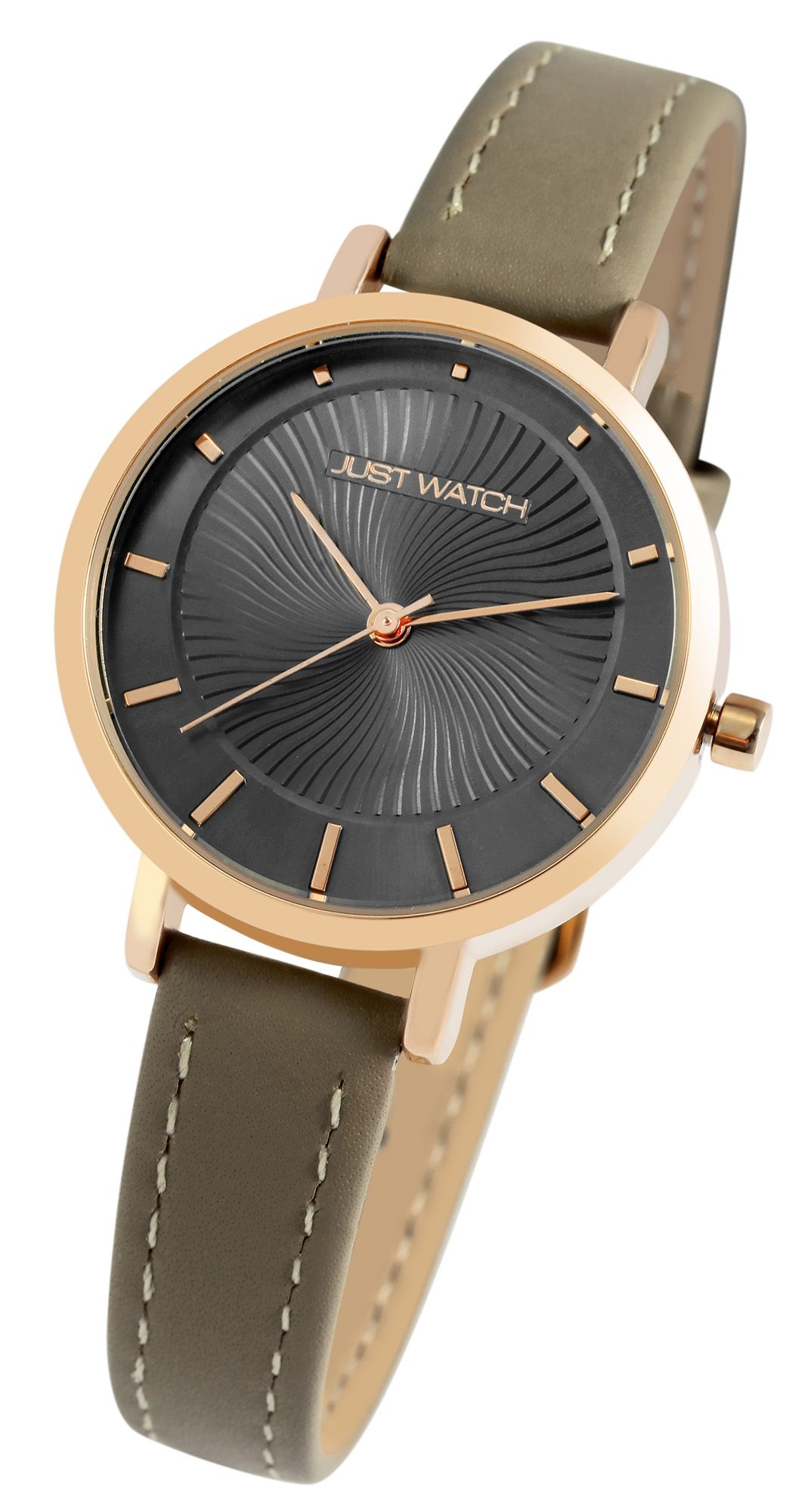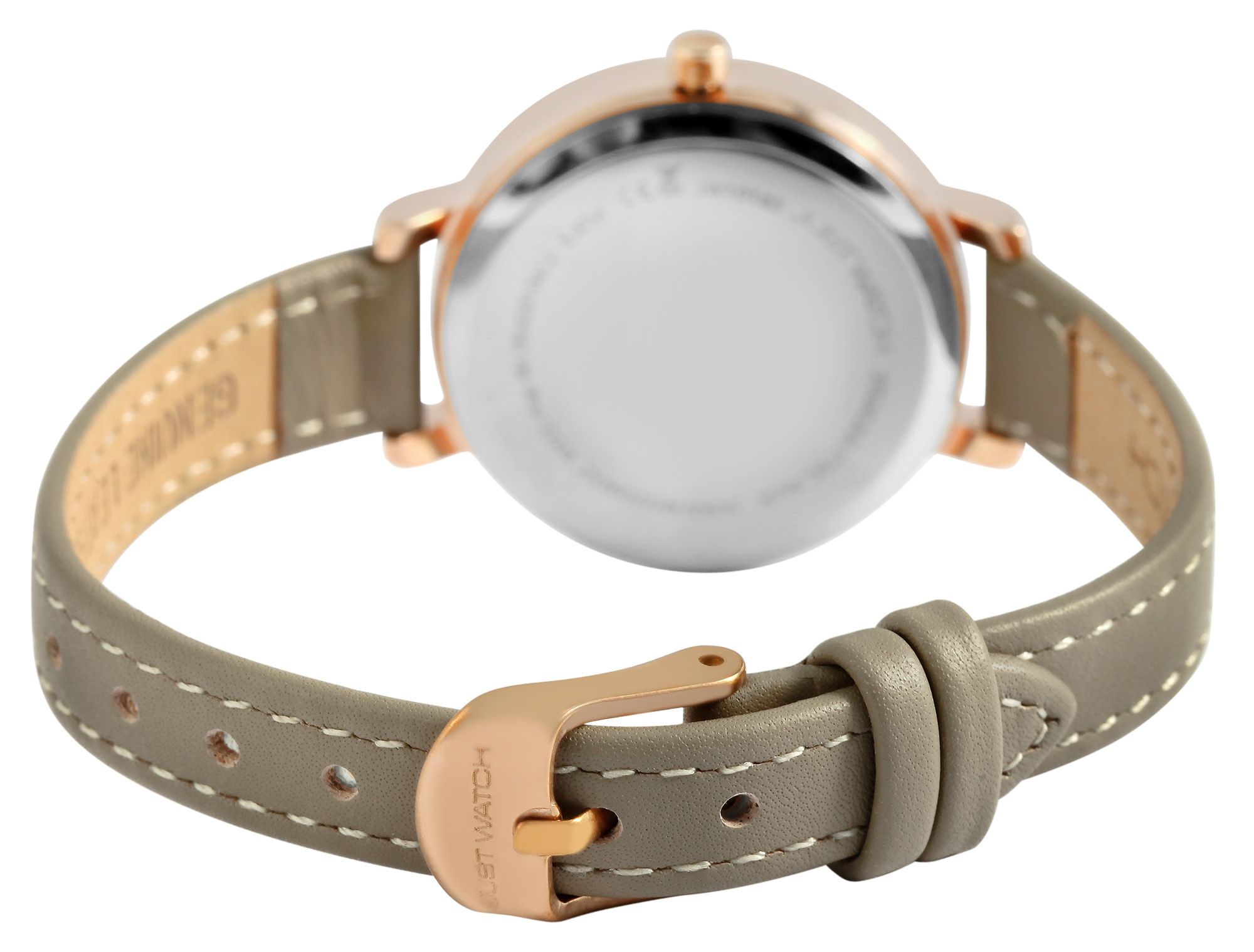 Productinformatie "Just Watch Damenuhr mit Echtlederarmband, taupe/roségoldfarben"