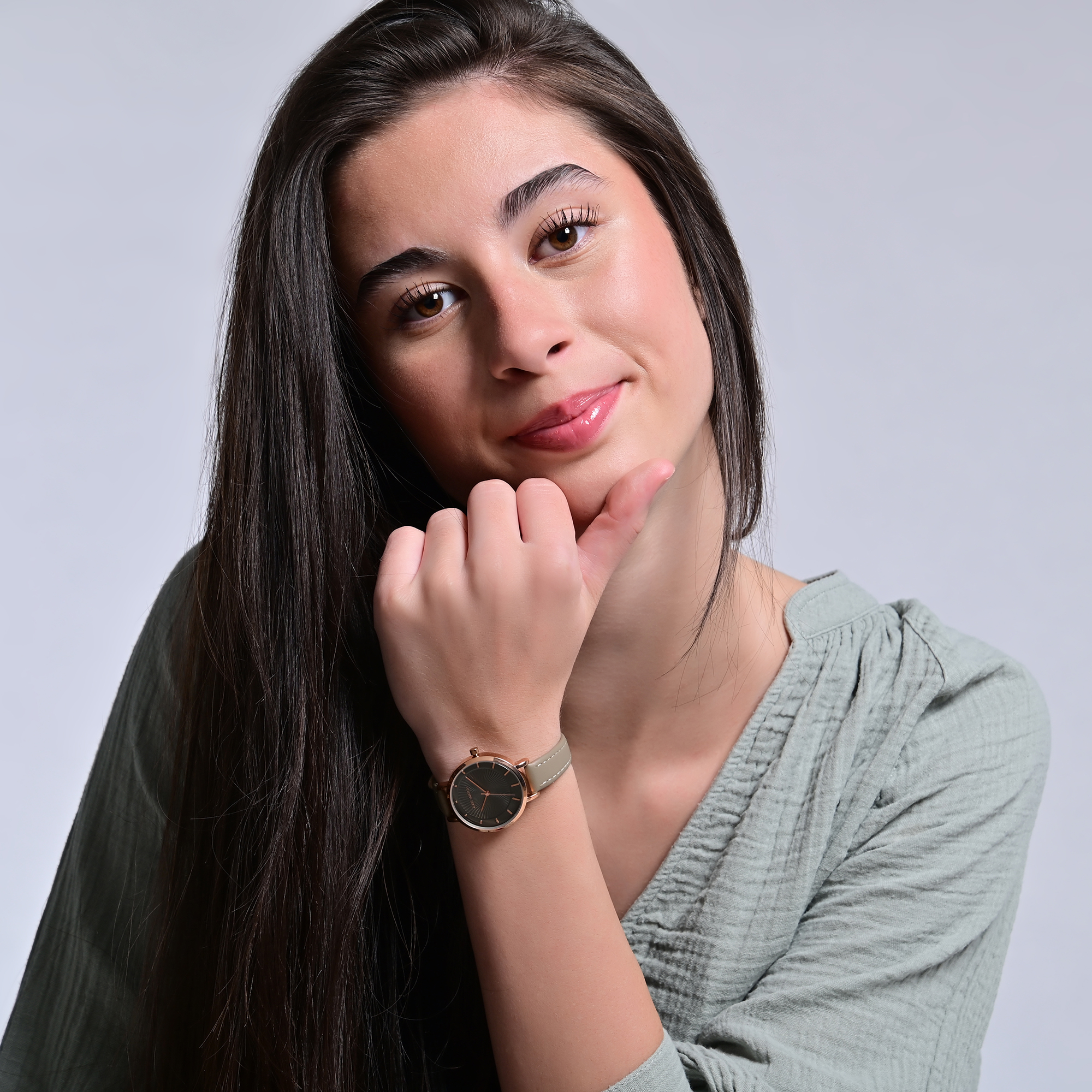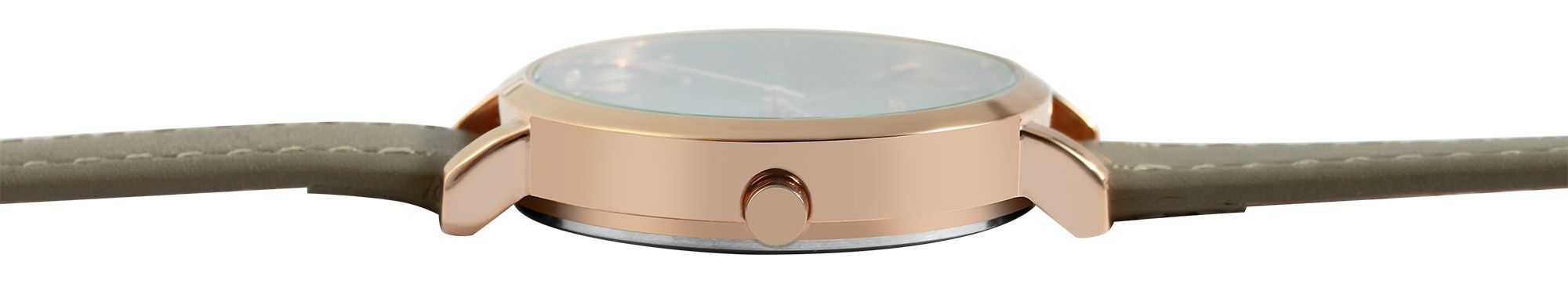 Het analoge damespolshorloge met 3 wijzers van het merk Just Watch is voorzien van het hoogwaardige en nauwkeurige Miyota 2035 kwartsuurwerk. De leren band is 12 mm breed bij de lug en loopt 2 mm taps toe zodat de lug van de gesp 10 mm is. Het klassieke horloge kan worden geopend en gesloten met een gesp. De totale lengte is 23,5 cm. De metalen kast met mineraalglas heeft een diameter van 32 mm en een kasthoogte van 8 mm. De achterkant van de kast is gemaakt van roestvrij staal. De wijzerplaat is zeer duidelijk ingedeeld zodat de huidige tijd in één oogopslag snel kan worden afgelezen. De horlogekast, wijzers en indexen hebben dezelfde kleur en maken het design van het dameshorloge compleet. Dankzij de hoogwaardige materialen en natuurlijke grondstoffen die zijn gebruikt, is dit uurwerk bijzonder huidvriendelijk en dus ideaal voor mensen met een allergie. Je ontvangt een garantiekaart en een originele Just Watch doos als accessoires voor je product.