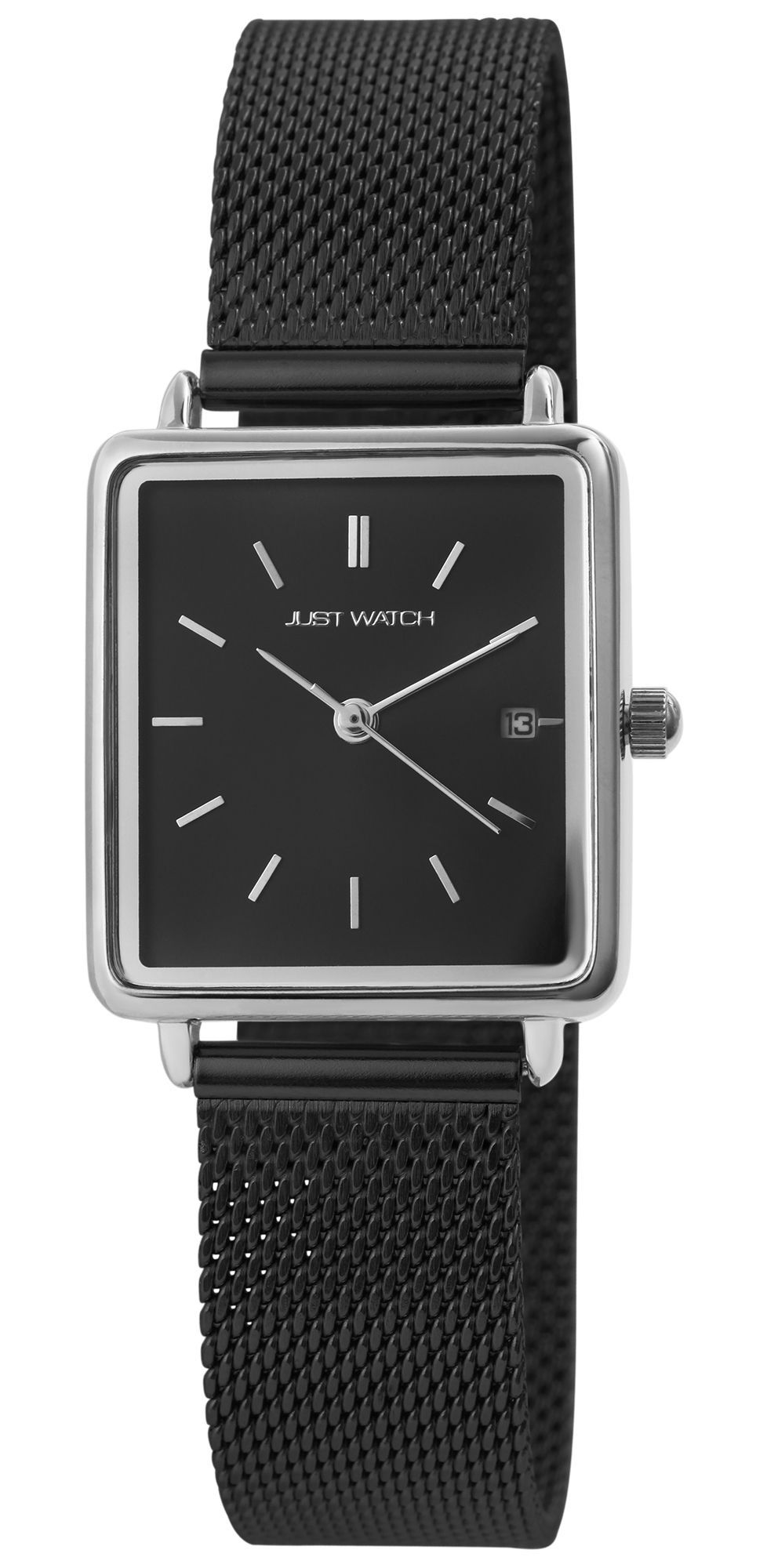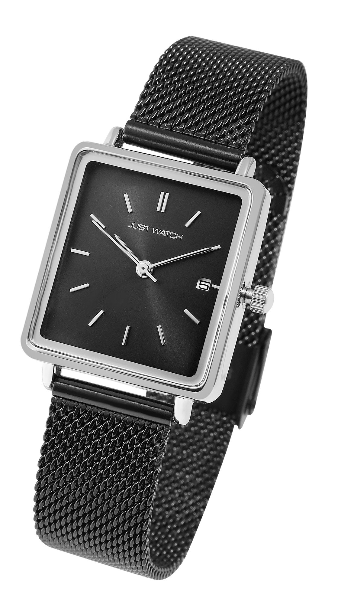 Productinformatie "Just Watch Damenuhr mit Milanesearmband, schwarz/silberfarben"