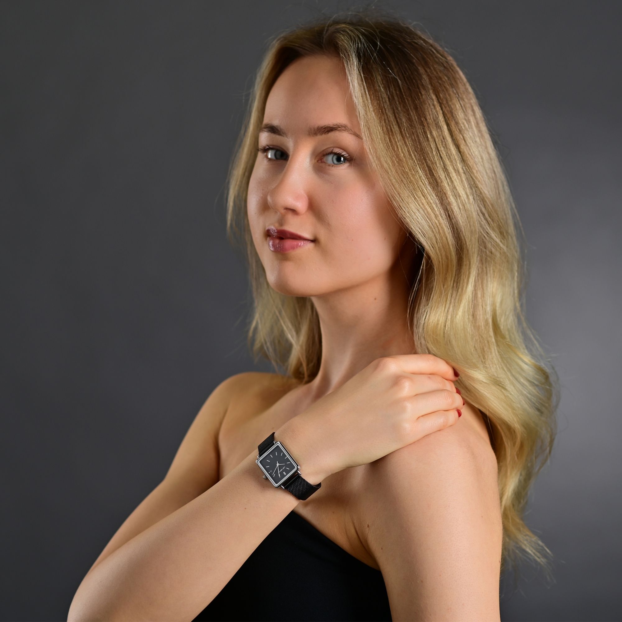 De slanke kast van 29 x 26 x 7 mm geeft de "Sienna" een elegante en ingetogen look, terwijl de elegante roestvrijstalen Milanese band met een bandbreedte van 16 mm een bijzonder hoogtepunt is. Deze is comfortabel om te dragen en kan ook individueel aan de pols worden aangepast dankzij de praktische haaksluiting. De totale lengte van het horloge is 22 cm.
