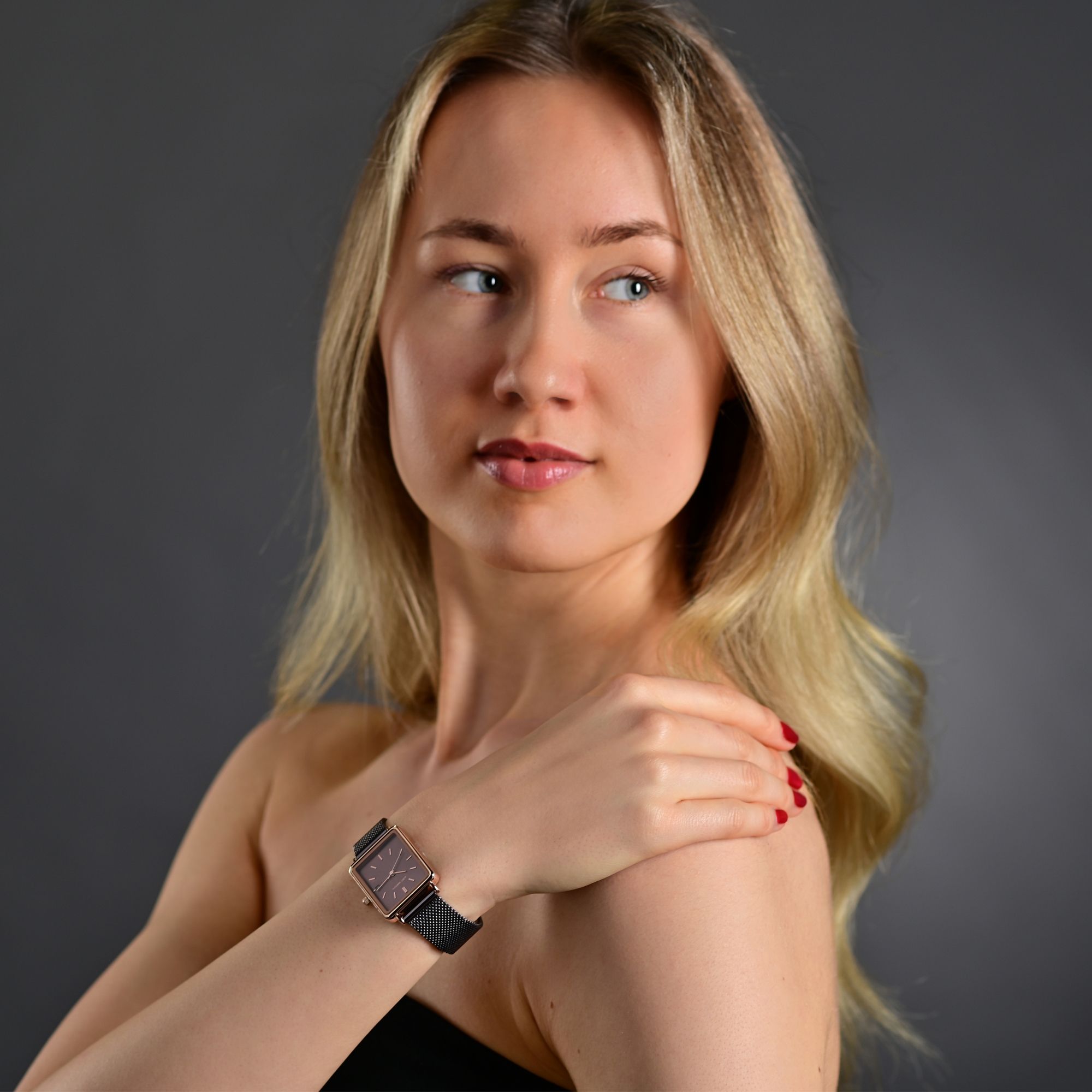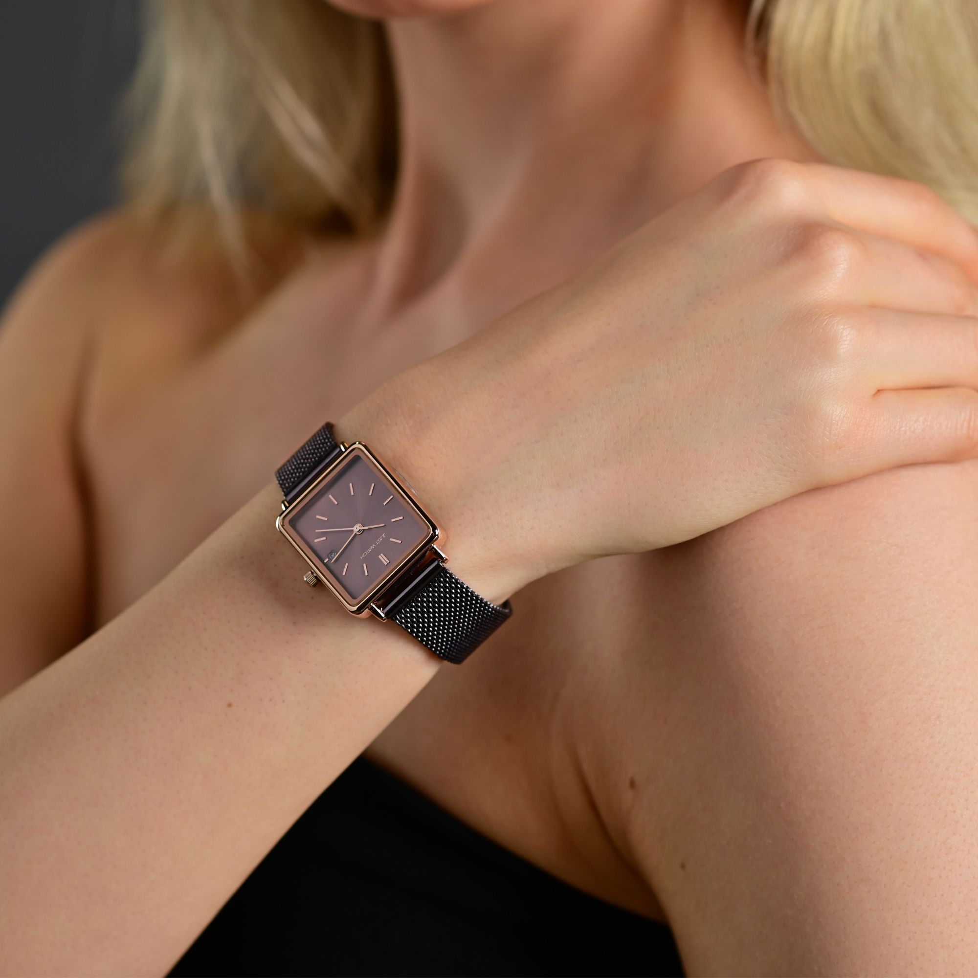 Het dameshorloge "Colette" van JUST WATCH combineert modieus design met hoogwaardige afwerking en mag in geen enkel horlogeassortiment ontbreken. De rechthoekige metalen kast (26 x 23 x 8 mm) met roestvrijstalen achterkant geeft het horloge een stijlvolle touch, terwijl de roestvrijstalen schakelarmband (21,8 cm lang, 6 mm breed) met vlindersluiting zorgt voor een stevige pasvorm. De lengte kan worden aangepast door eenvoudig afzonderlijke schakels te verwijderen. Het horloge is uitgerust met het hoogwaardige Miyota 2035 kwartsuurwerk en biedt nauwkeurige tijdmeting en betrouwbaarheid. De eenvoudig ontworpen wijzerplaat met Arabische cijfers zorgt voor een goede leesbaarheid. Met een waterdichtheid van 3 ATM is het horloge geschikt voor dagelijks gebruik. "Colette" wordt geleverd in een elegante geschenkverpakking. Geef je klanten een stijlvol dameshorloge cadeau!
