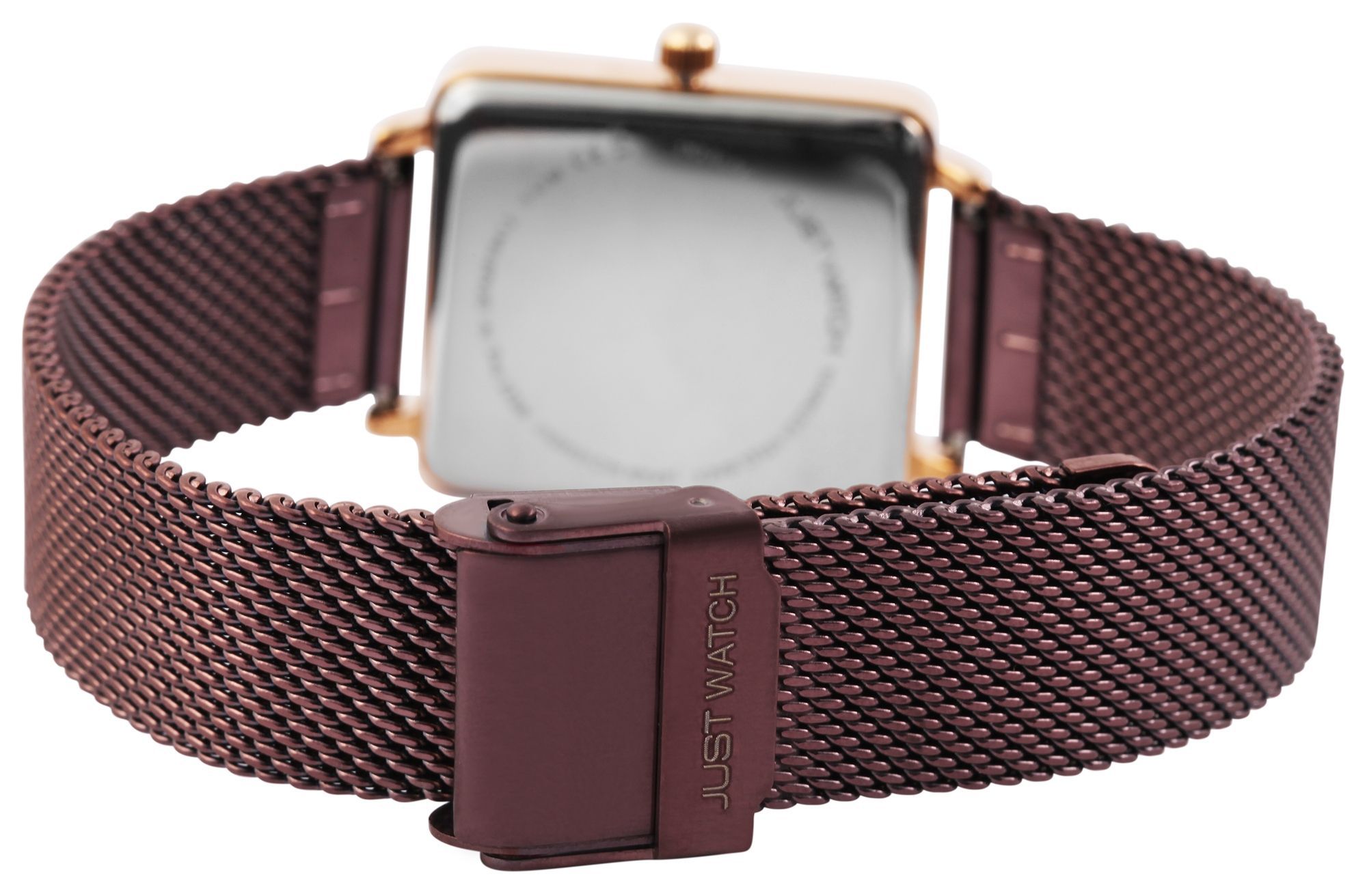Productinformatie "Just Watch Damenuhr mit Milanesearmband, dunkelrot/roségoldfarben"