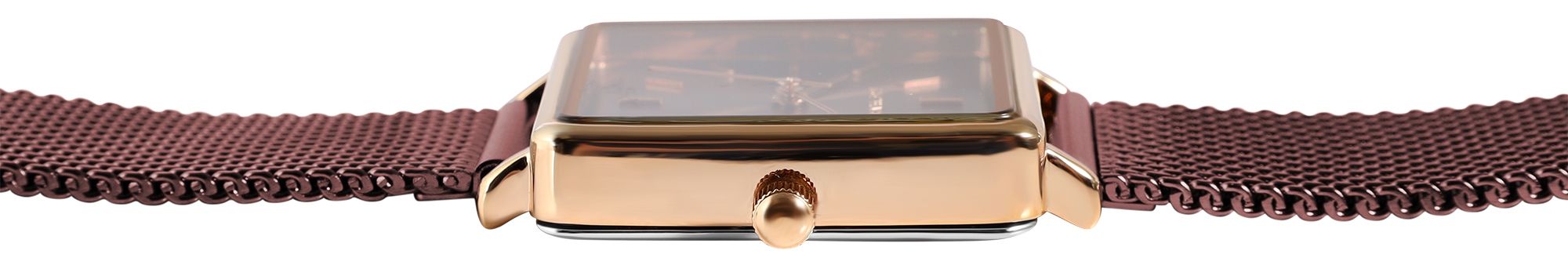 Just Watch Damenuhr mit Milanesearmband, dunkelrot/roségoldfarben