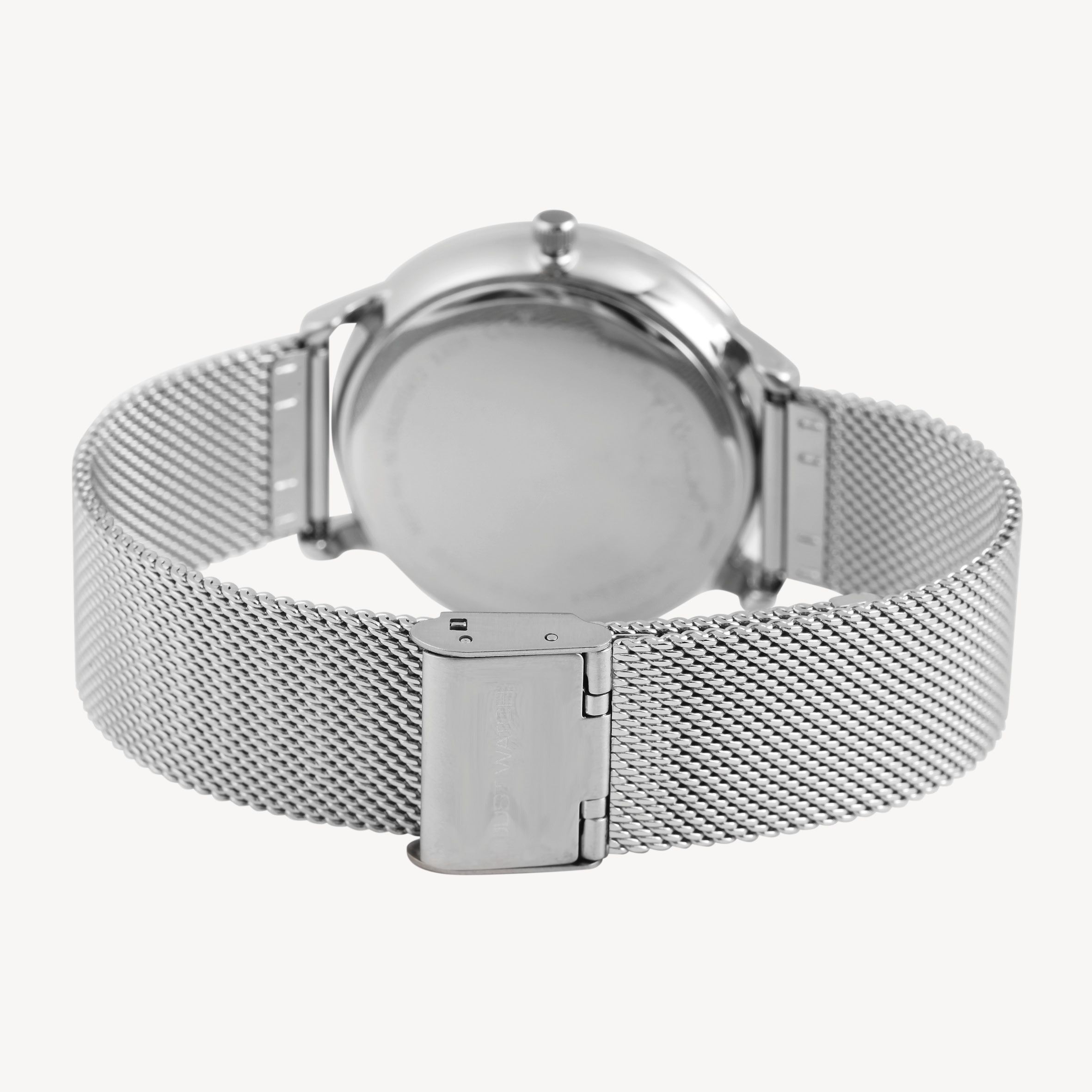 De fijne roestvrijstalen Milanese armband (bandbreedte 20 mm) zorgt voor een hoog draagcomfort en kan dankzij de praktische haaksluiting individueel op de gewenste lengte worden ingesteld.