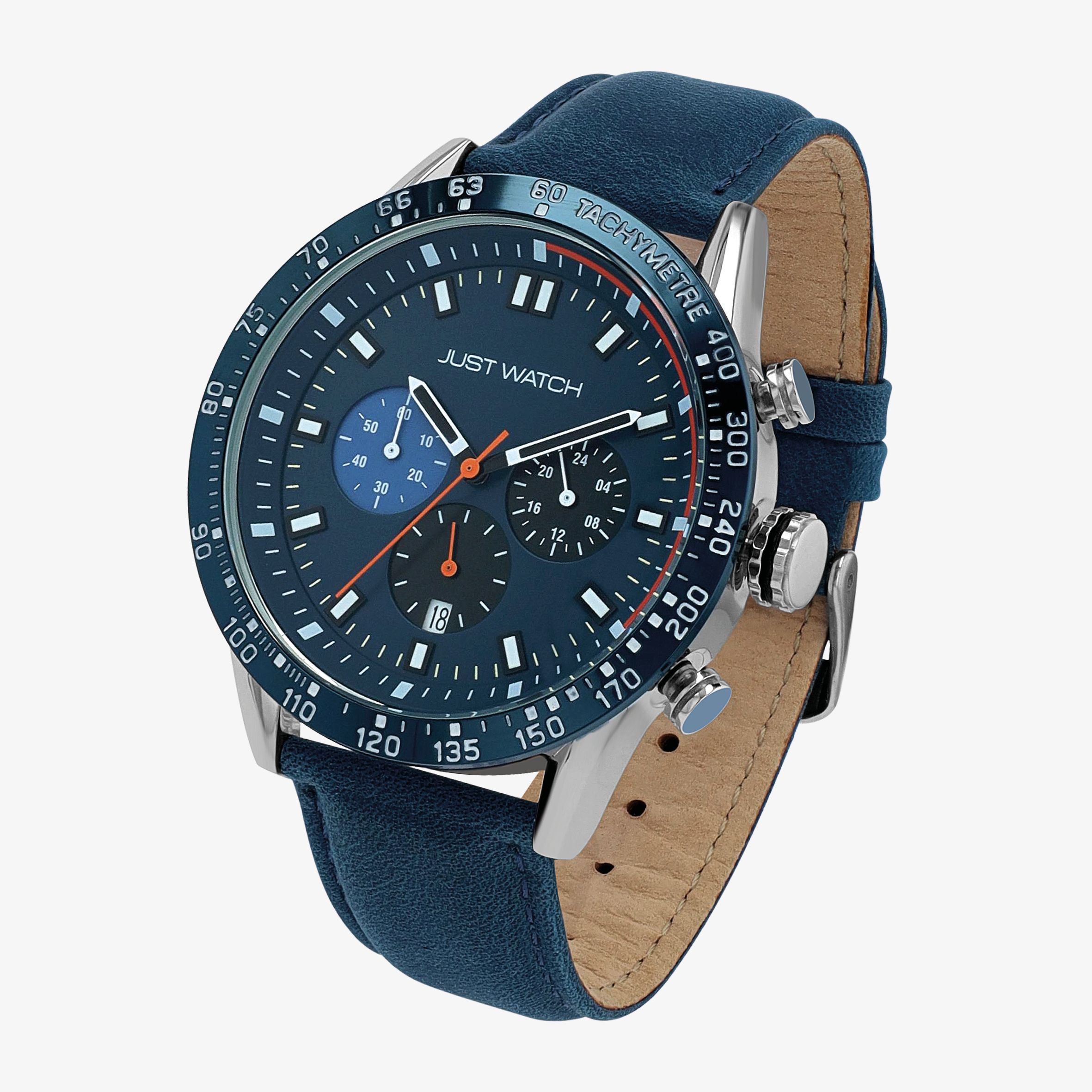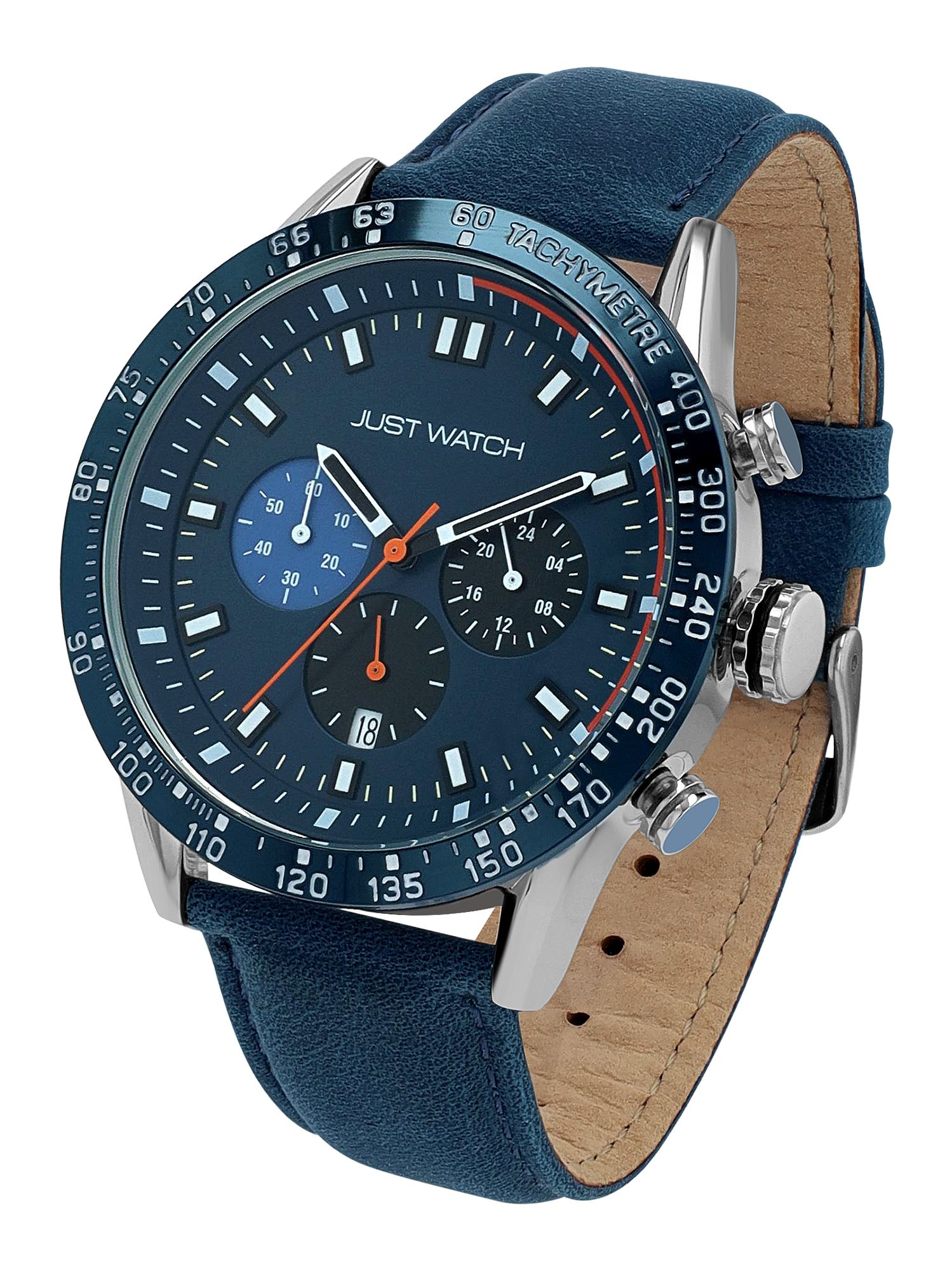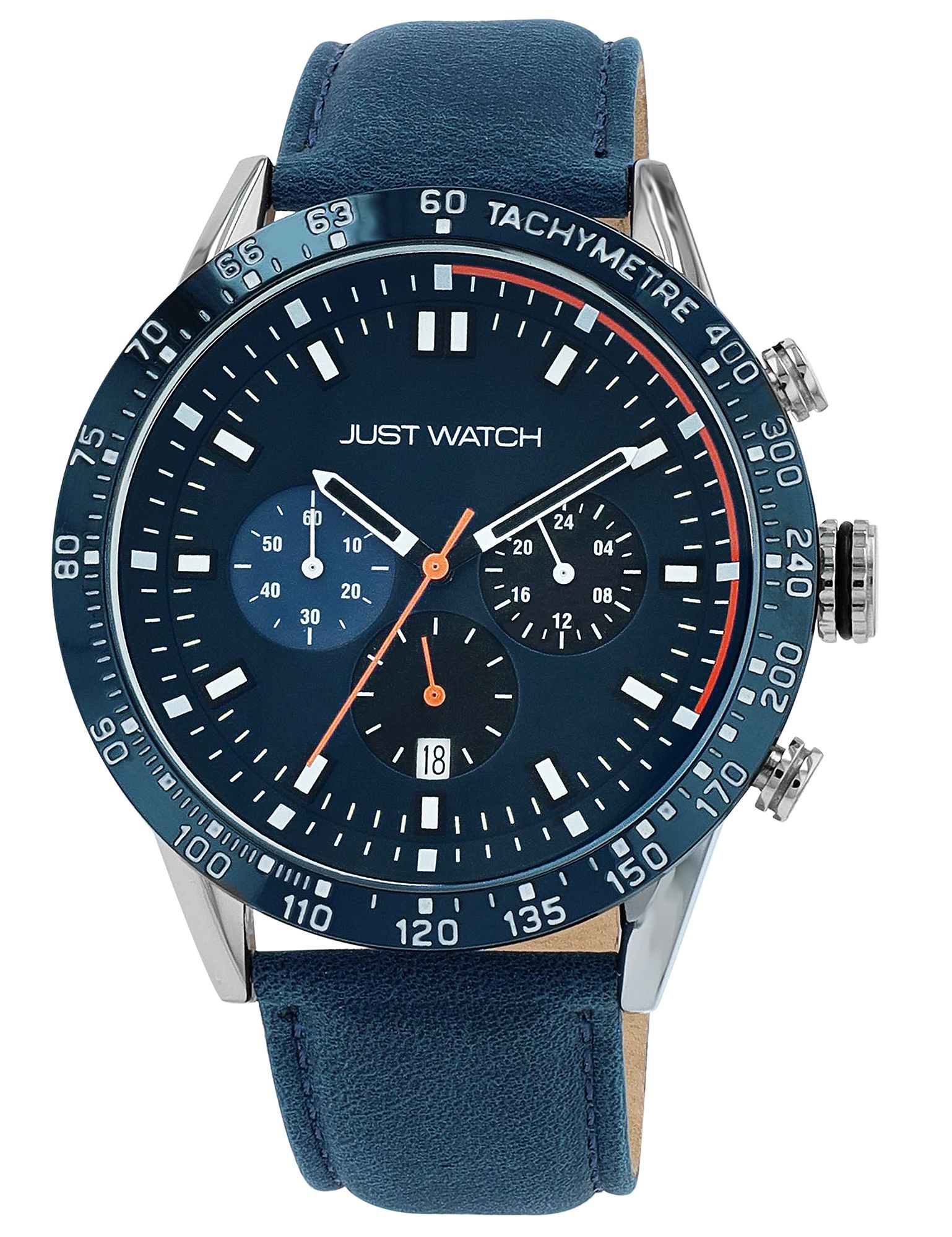 Productinformatie "Just Watch Herrenchronograph mit Lederarmband, 5 ATM, blau"