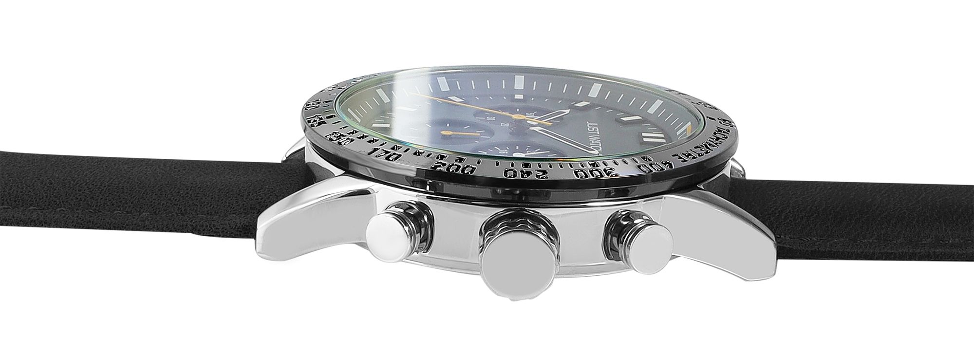 In onze groothandel voor horloges en nog veel meer presenteren we met trots onze Just Watch herenchronograaf met leren band en een indrukwekkende waterbestendigheid van 5 ATM.