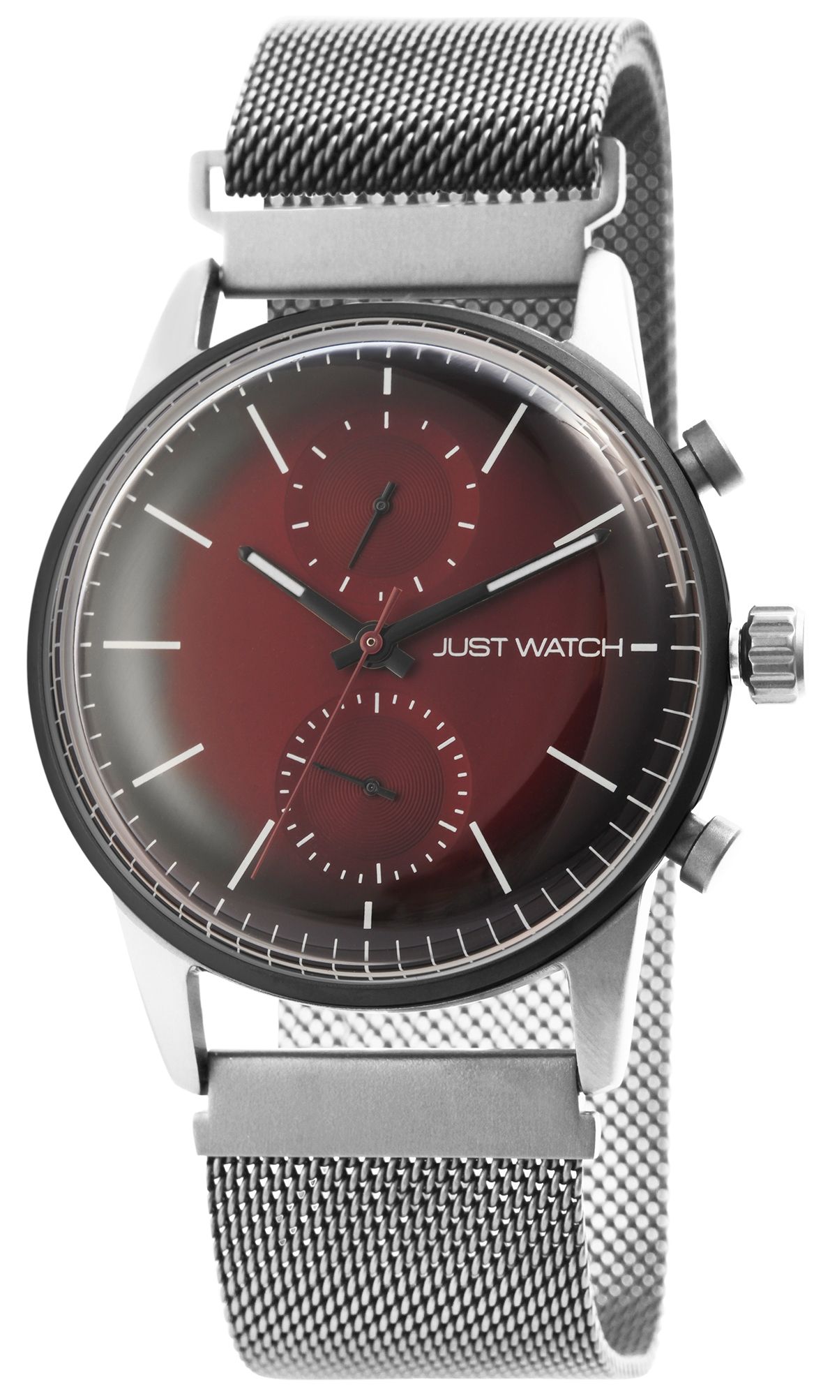 Productinformatie "Just Watch Herrenuhr, Milanesearmband, silberfarben/rot"