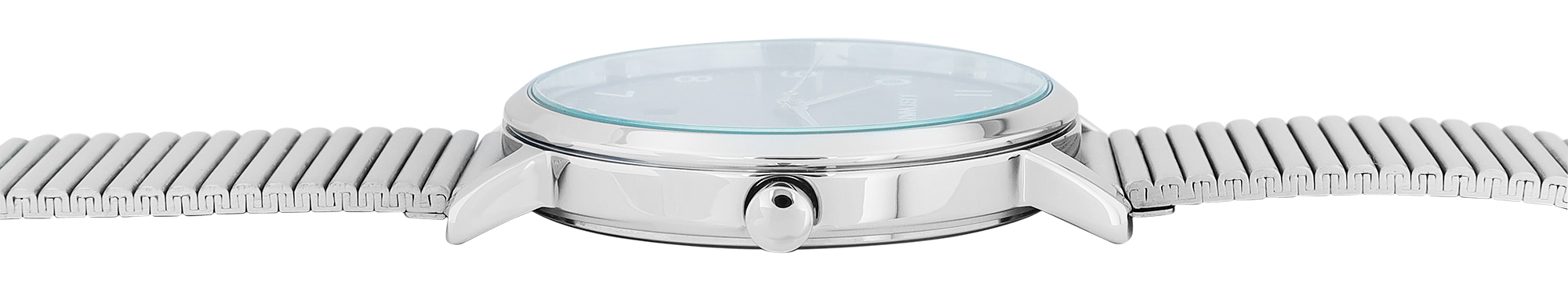 De eenvoudige wijzerplaat met Arabische cijfers zorgt voor een duidelijke aflezing van de tijd en wordt aangevuld door een 3-hands uurwerk met datumweergave.