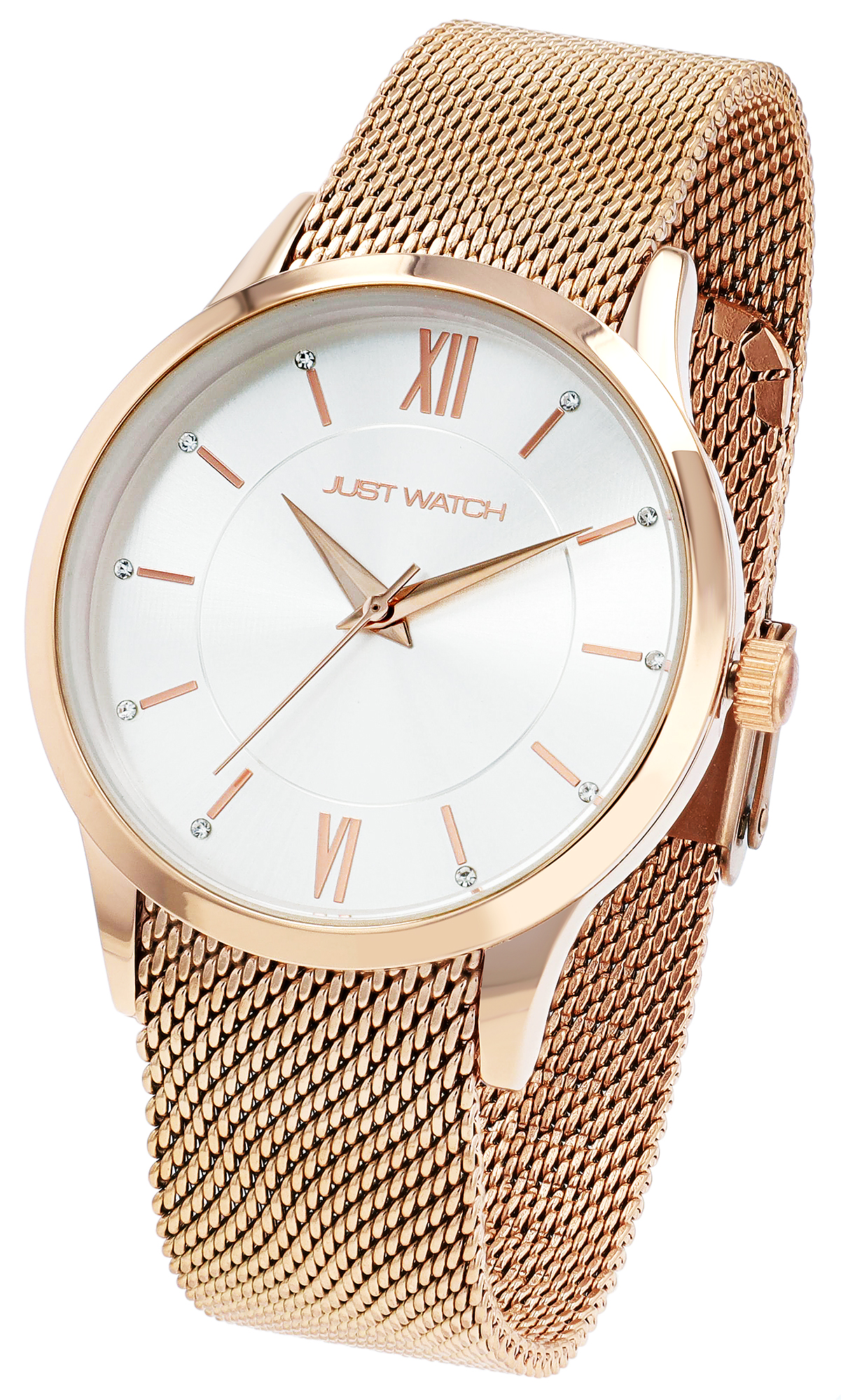 Productinformatie "Just Watch dameshorloge, Milanese armband, roestvrij staal, roségoudkleurig"