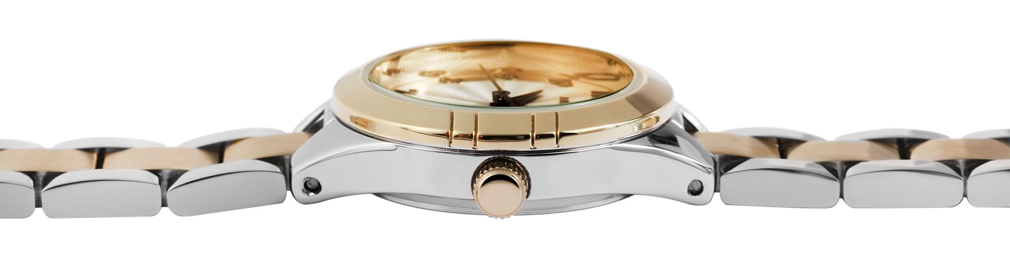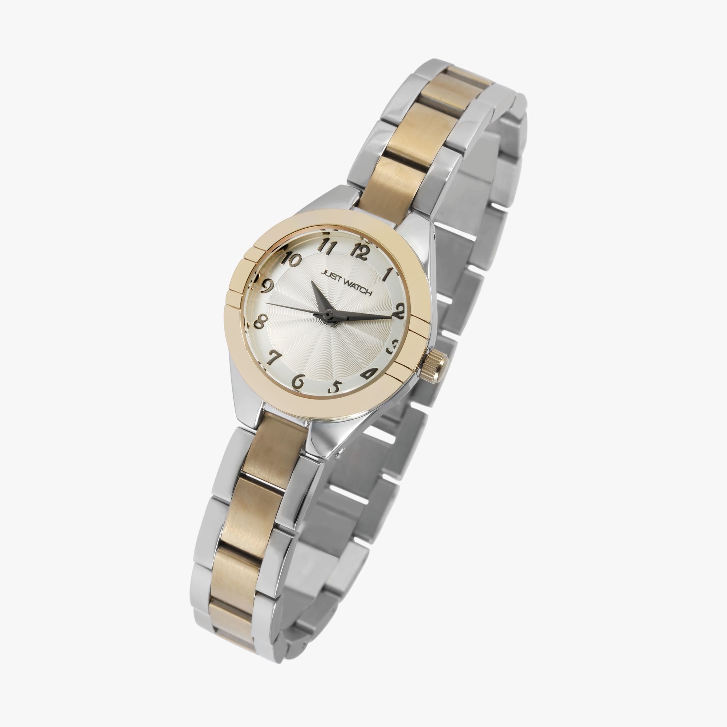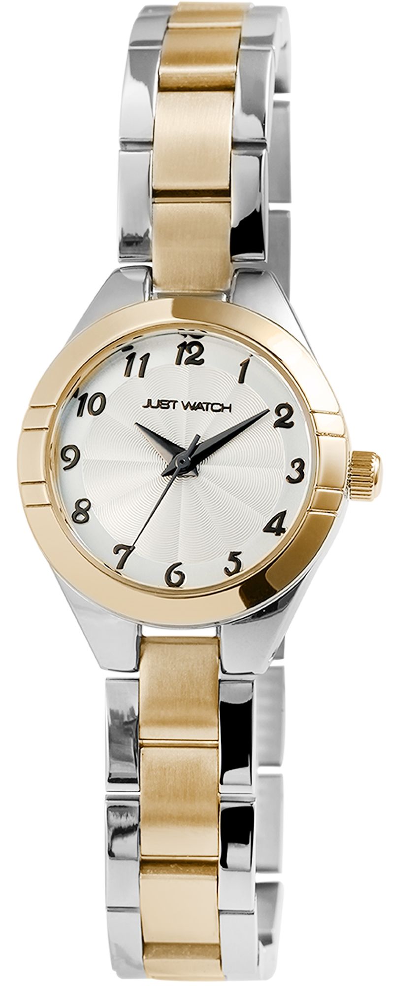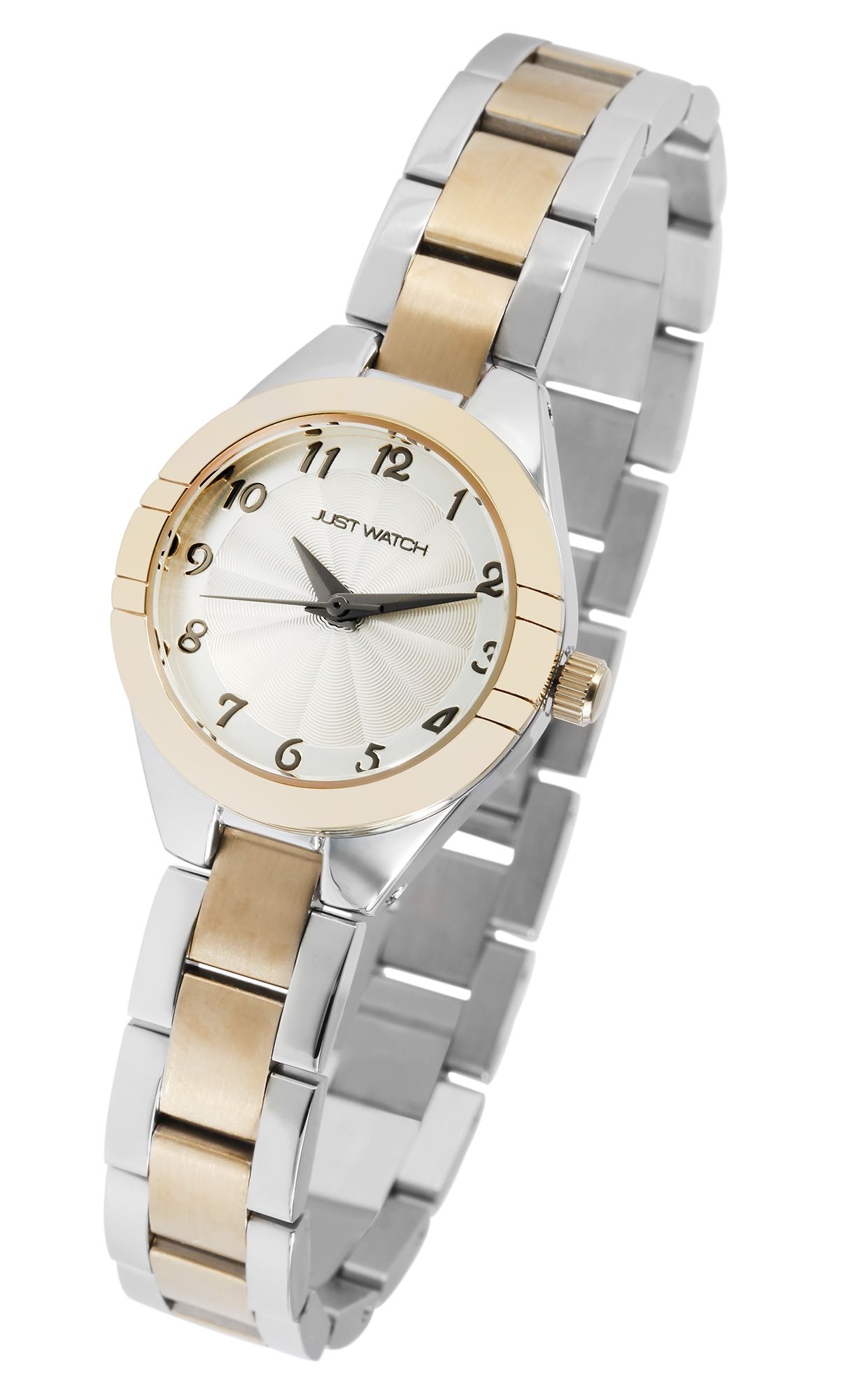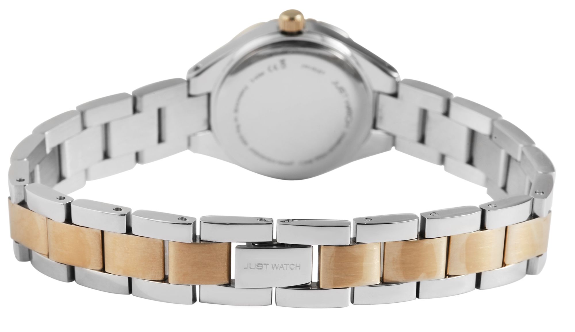 Productinformatie "Just Watch dameshorloge met roestvrijstalen armband, zilver- en goudkleurig"