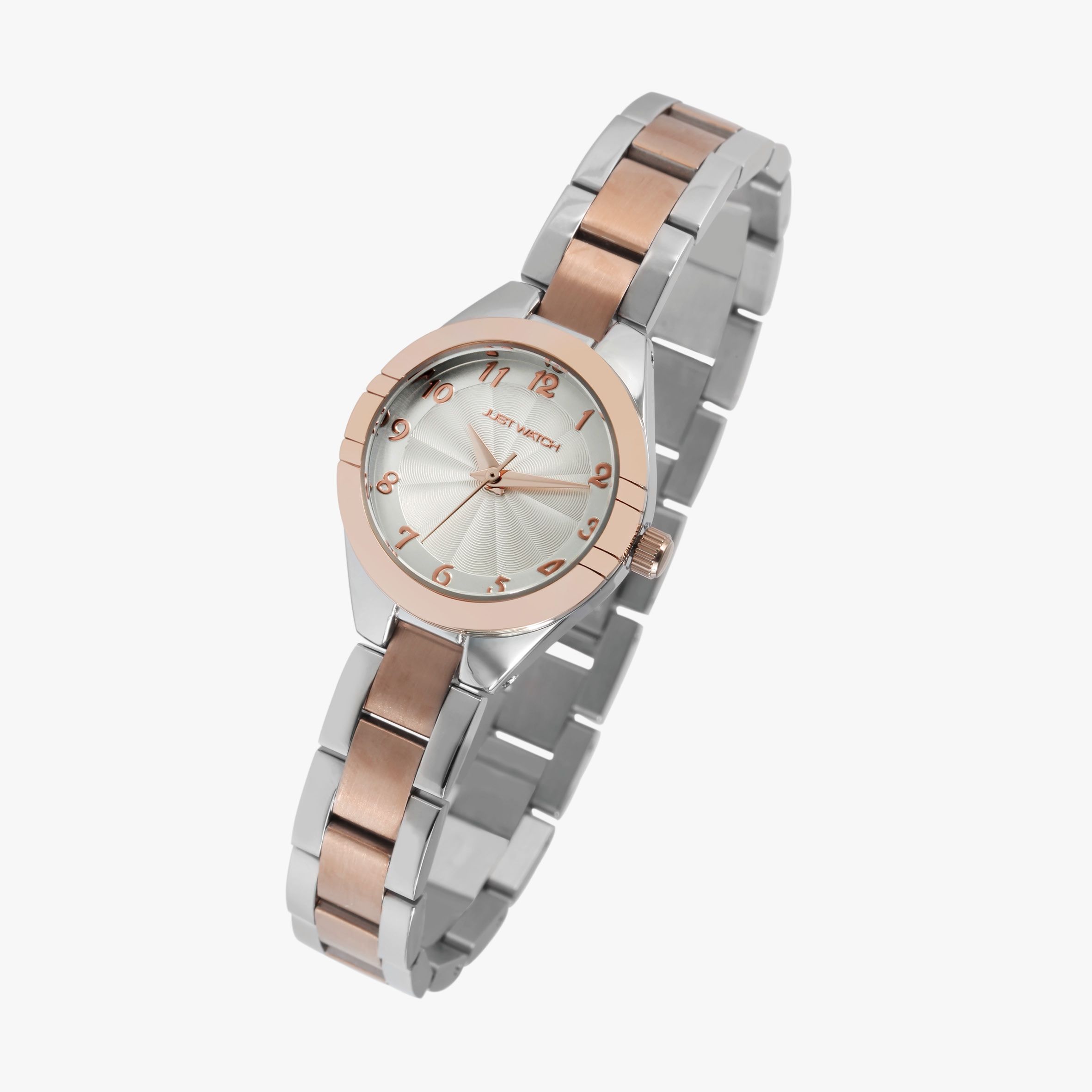 Productinformatie "Just Watch dameshorloge met roestvrijstalen armband, zilver- en roségoudkleurig"