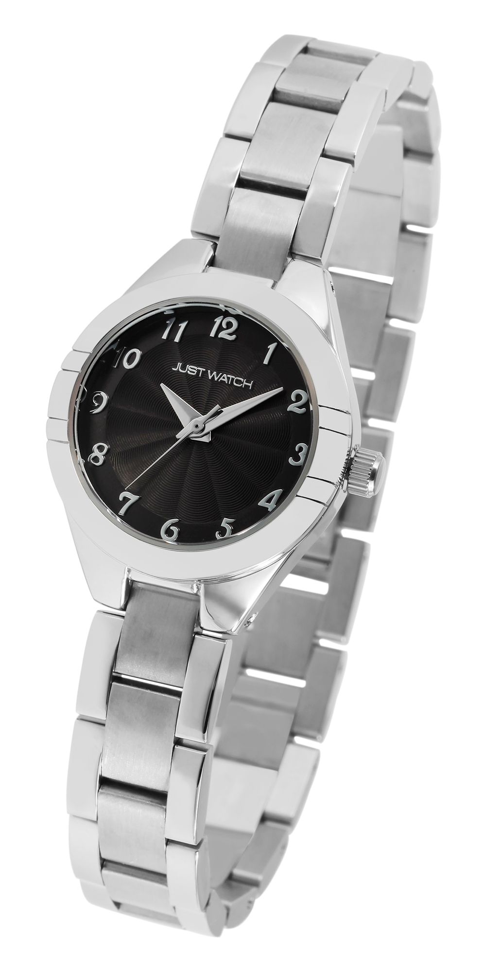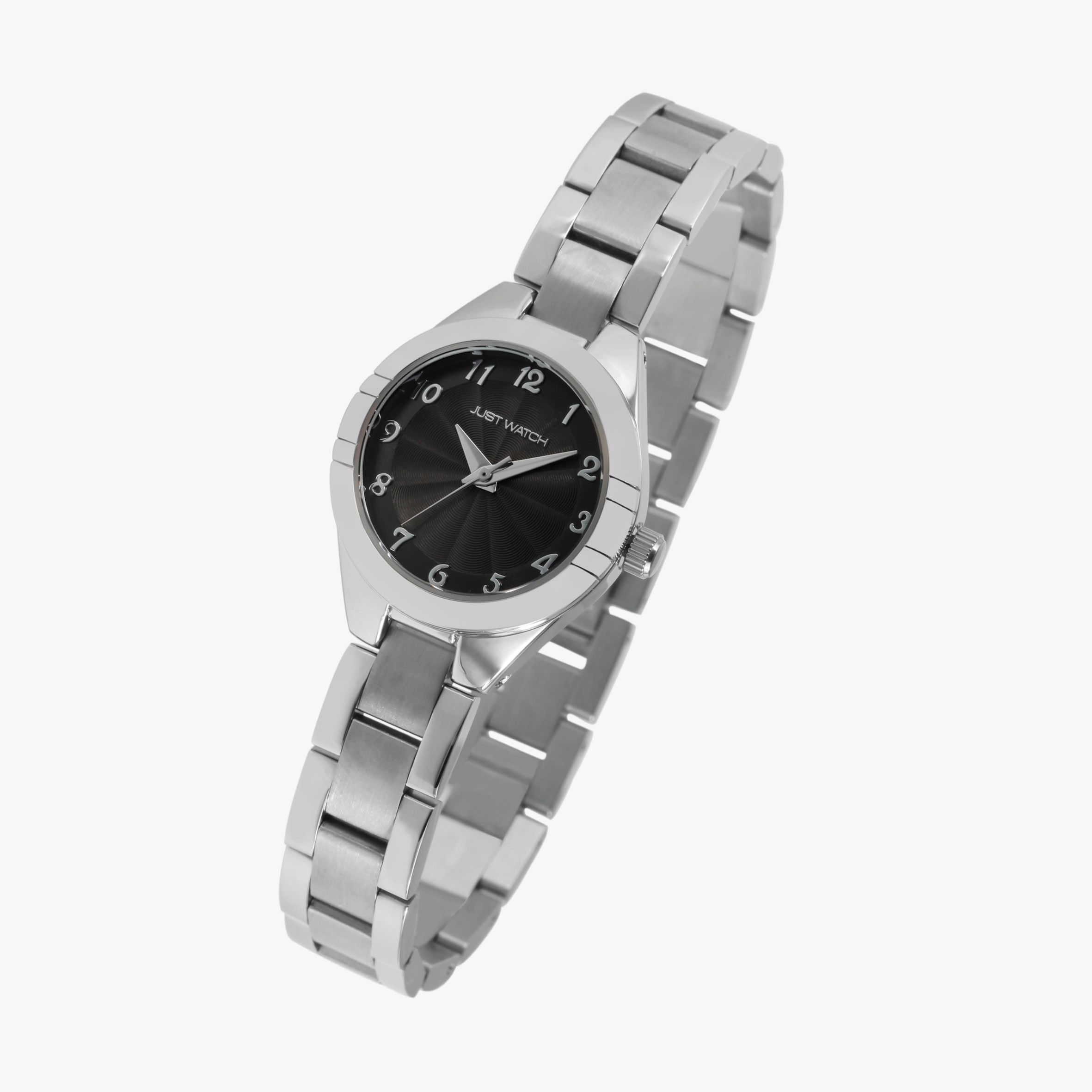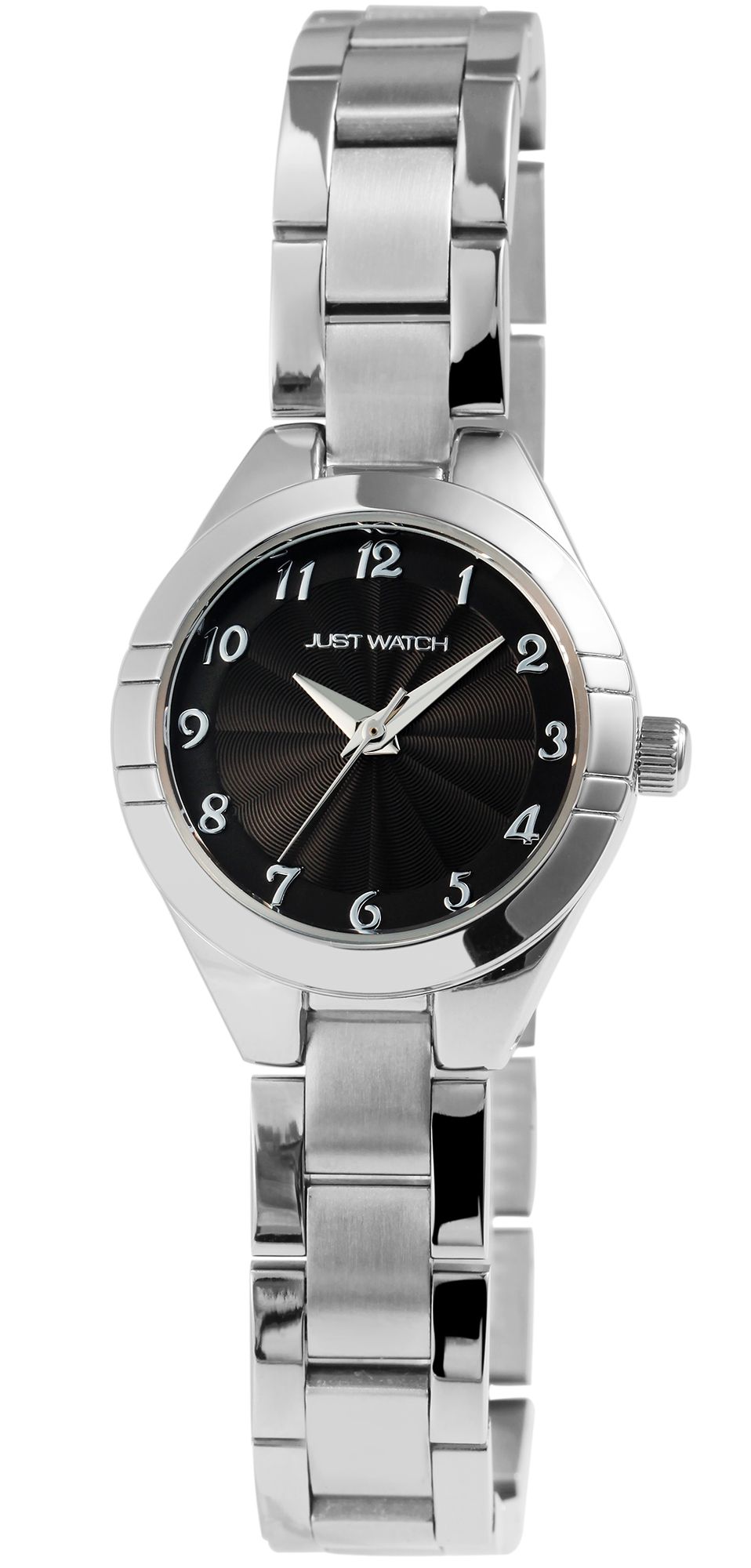 Het analoge damespolshorloge met 3 wijzers van het merk Just Wach heeft een hoogwaardig kwartsuurwerk. De roestvrijstalen armband heeft zowel een gepolijste als een matte oppervlakteafwerking en zet vakkundig de toon. Het is 12 mm breed bij de lug en kan worden geopend en gesloten met een haaksluiting. De totale lengte van het horloge is 20,5 cm en kan worden aangepast dankzij de verwijderbare elementen. De metalen kast met mineraalglas heeft een diameter van 26 mm en een kasthoogte van 8 mm. De achterkant van de kast is gemaakt van roestvrij staal en het horloge heeft een waterdichtheid van 3 bar. De wijzerplaat is monochroom en heeft Arabische cijfers. Hierdoor is het gemakkelijk om de tijd in de gaten te houden. Het horloge maakt indruk met zijn eenvoudige elegantie en kan op verschillende manieren worden gecombineerd. Elke Just Watch wordt geleverd met een originele doos en een garantiekaart.