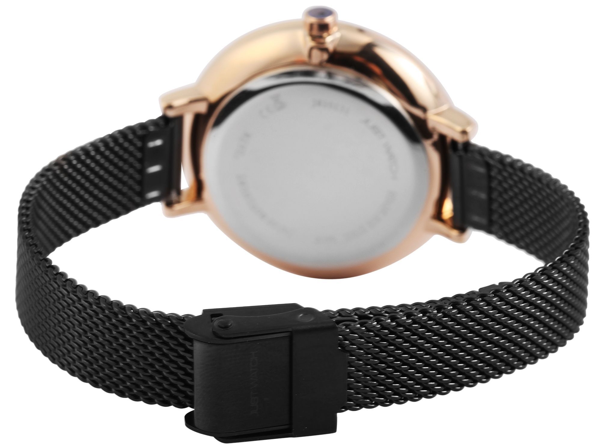 Productinformatie "Just Watch damespolshorloge, roestvrijstalen armband, zwart/rosegoudkleurig"