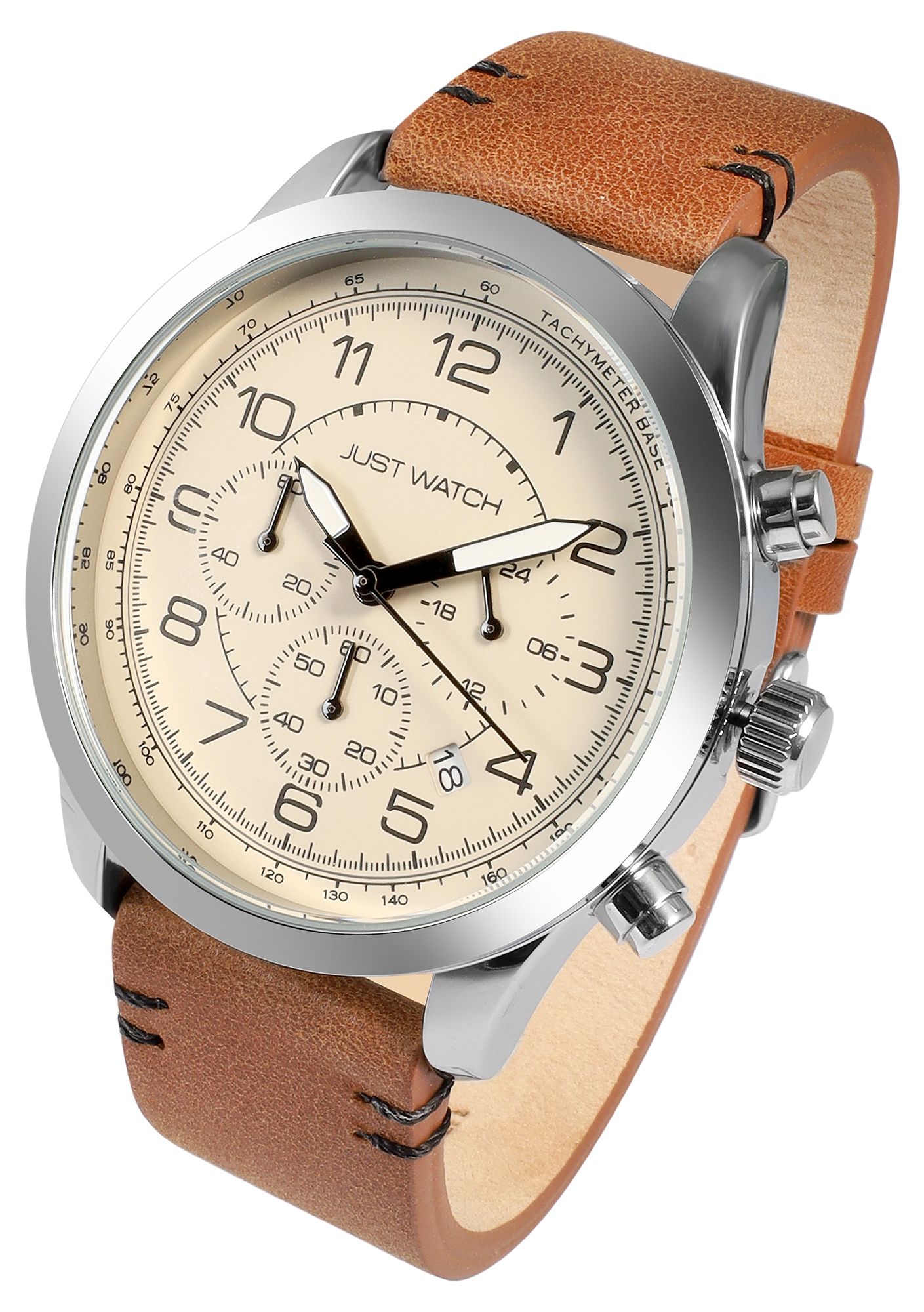 Productinformatie "Just Watch herenchronograaf, leren band, 5 ATM, bruin"