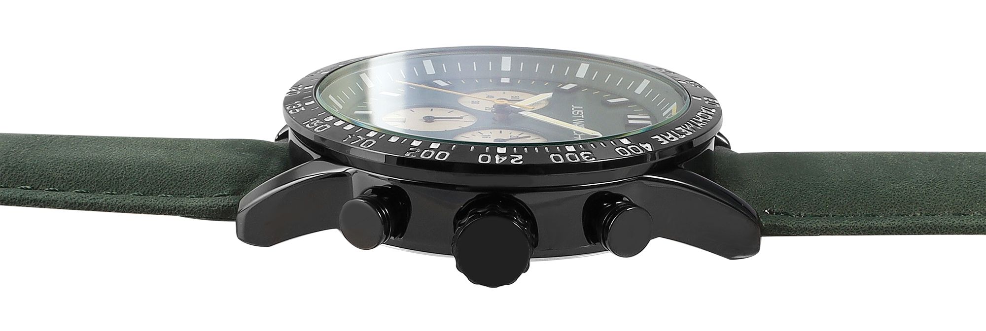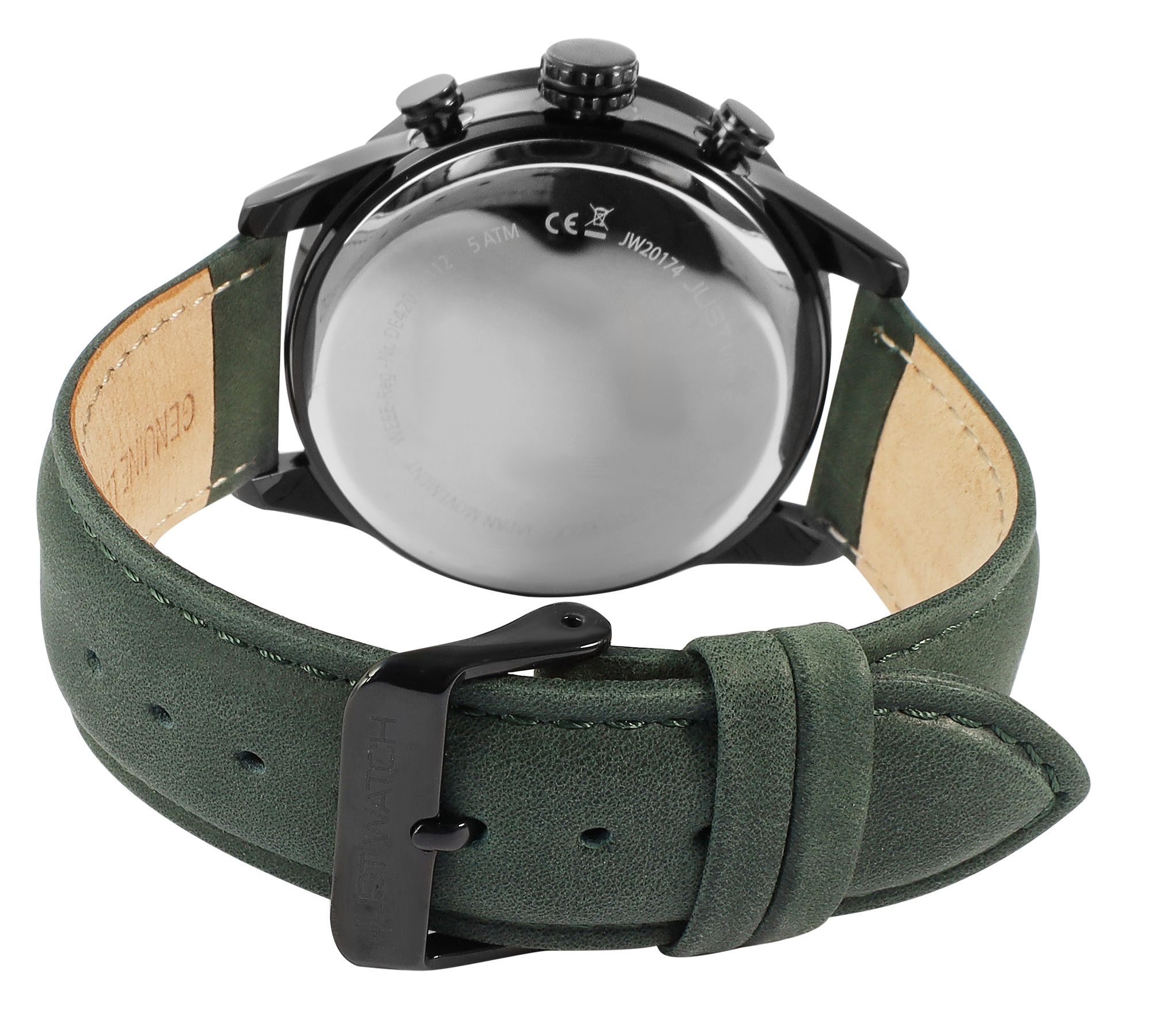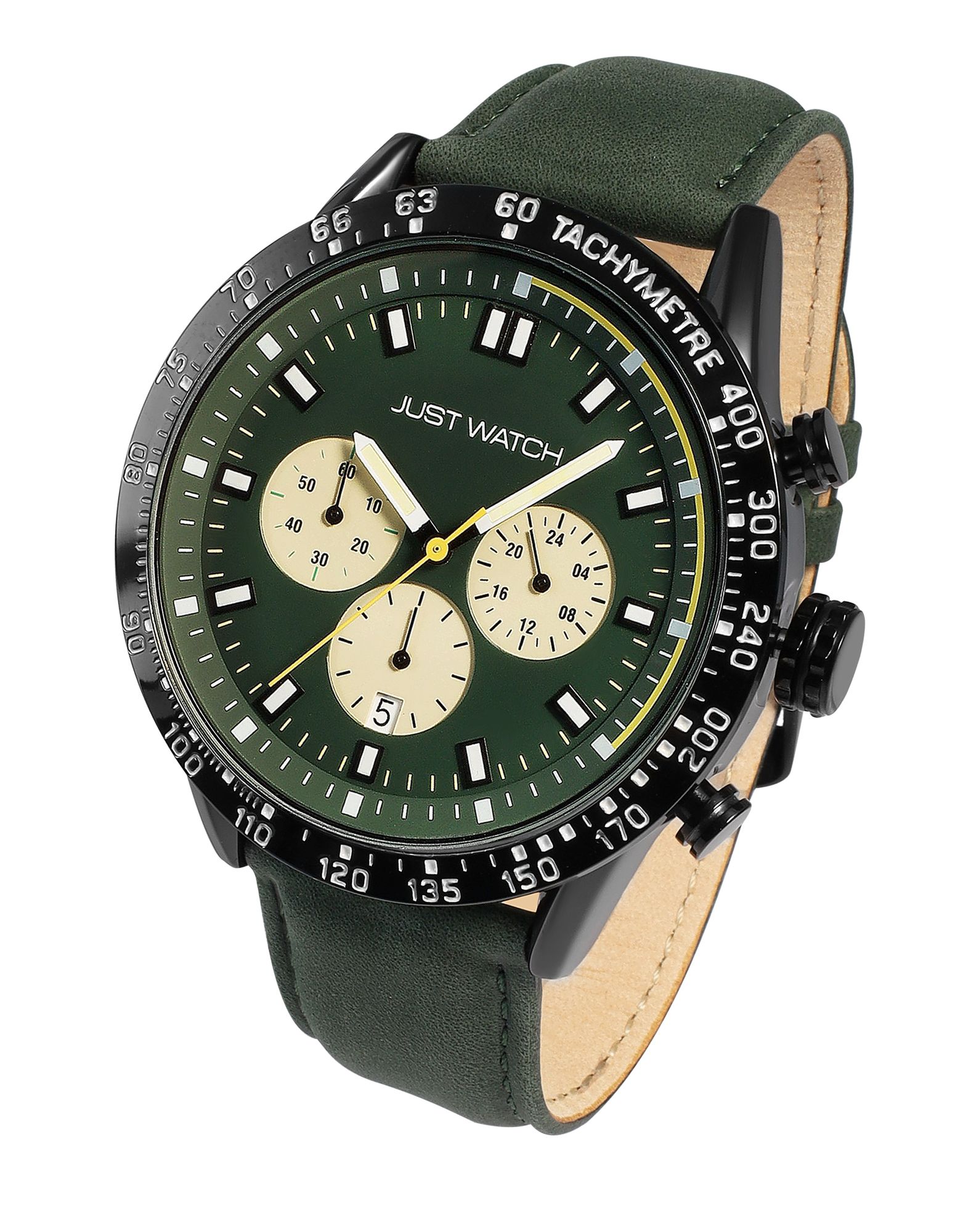 Productinformatie "Just Watch herenchronograaf met leren band, 5 ATM, groen"