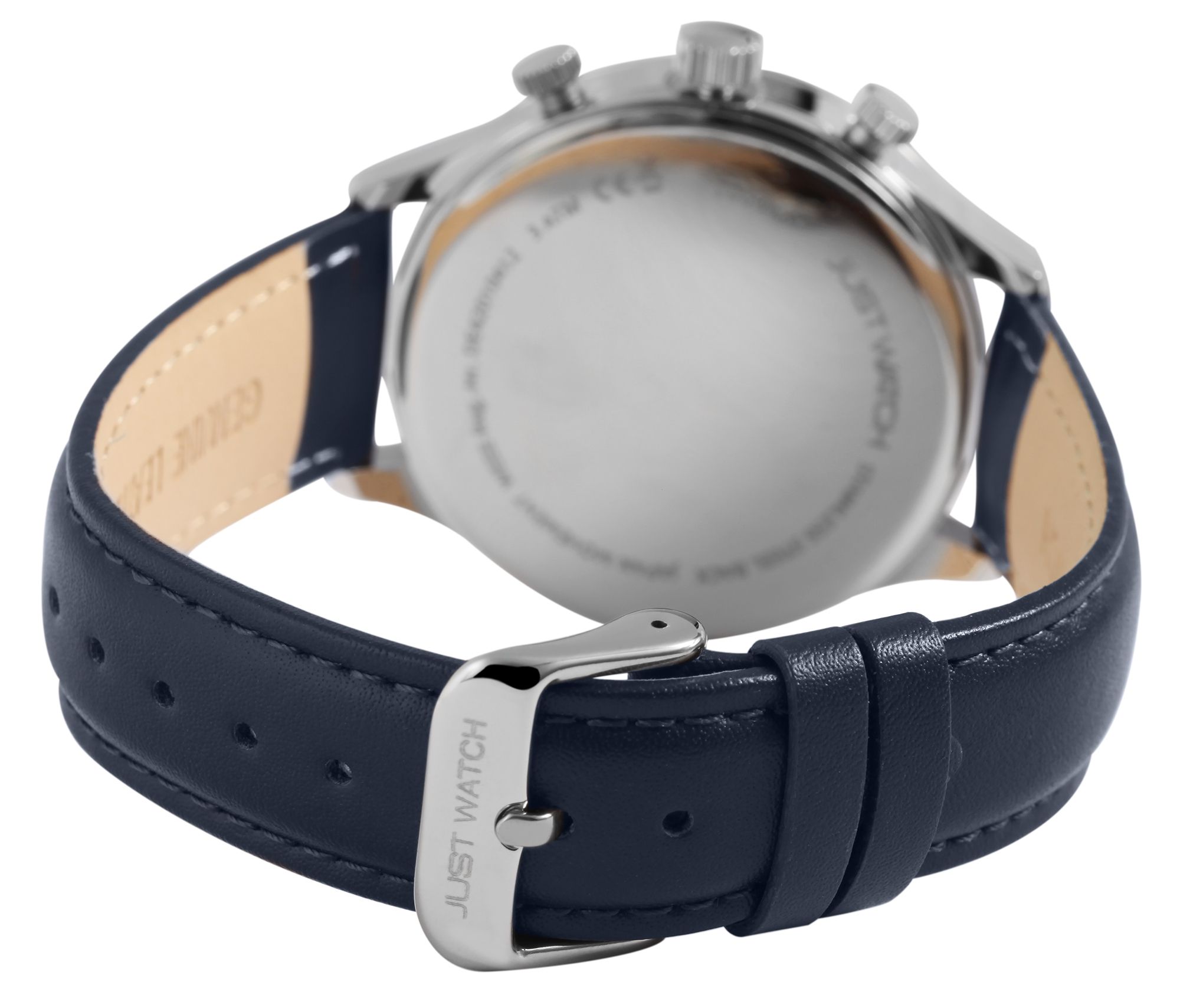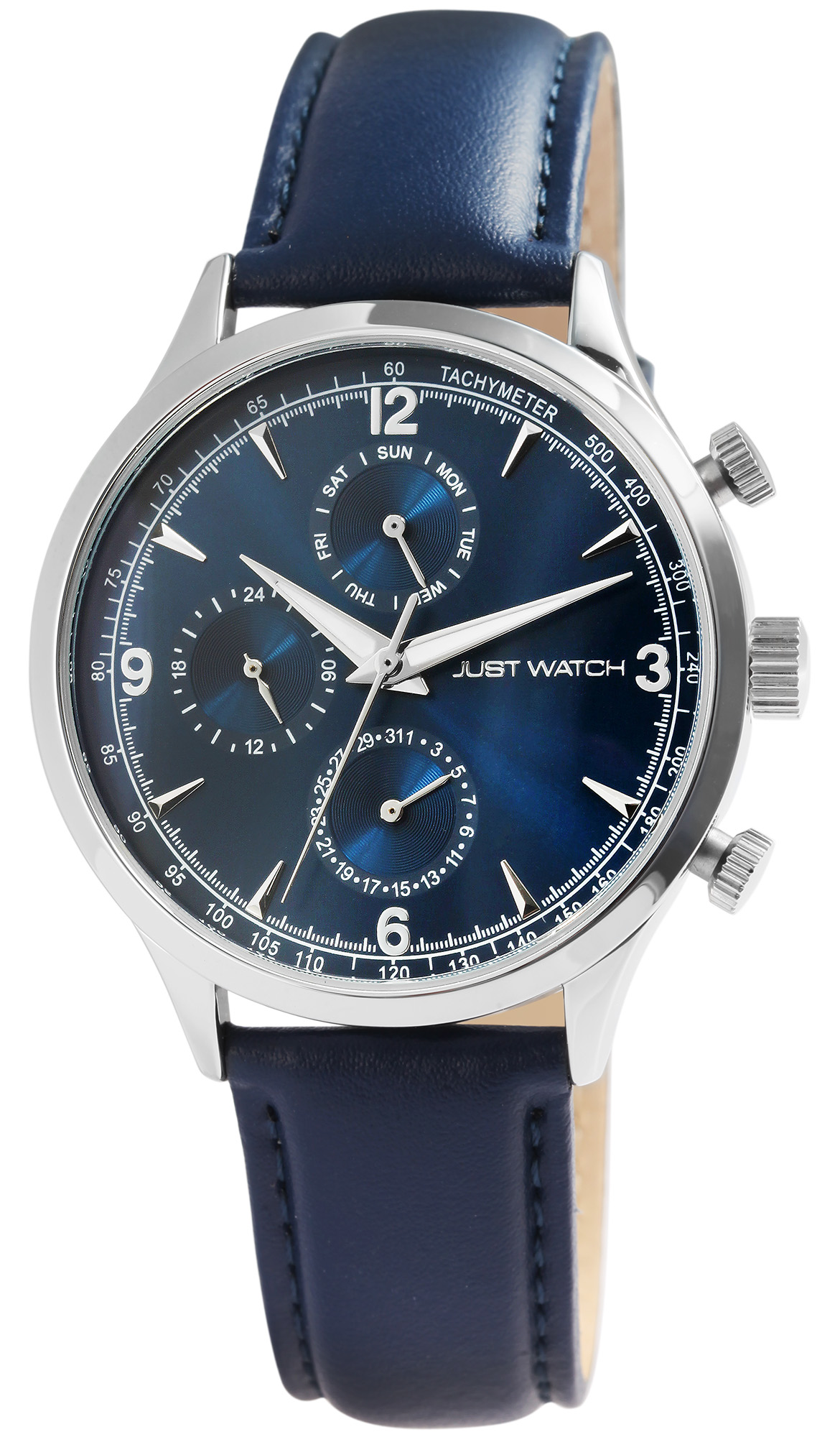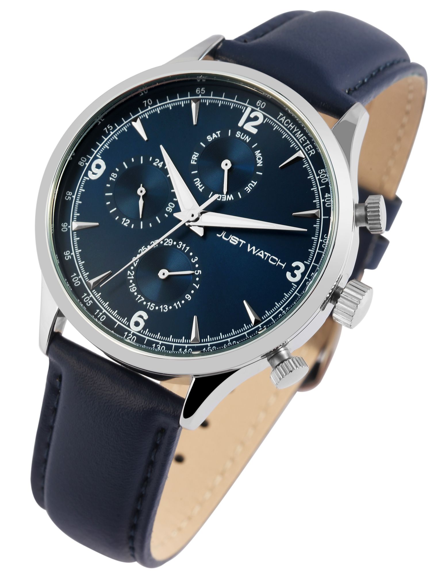 Productinformatie "Just Watch herenhorloge met echt lederen band, blauw/zilverkleurig"