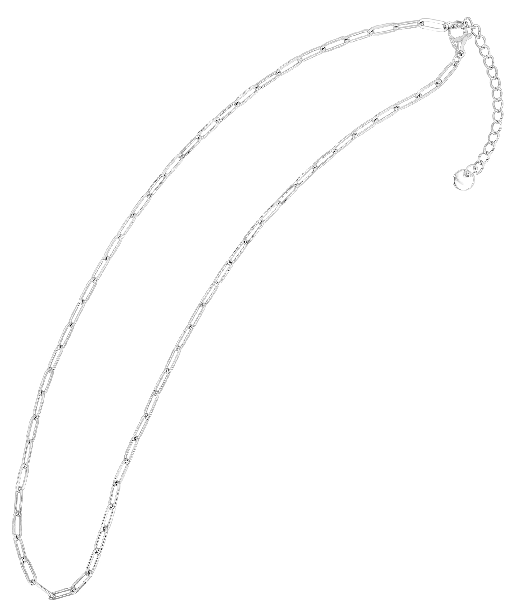 Gemaakt van hoogwaardig roestvrij staal in een klassieke zilverkleur, maakt deze ketting indruk door zijn duurzame kwaliteit en is bovendien bijzonder vriendelijk voor de huid. De ketting is verkrijgbaar in lengtes van 40 cm of 45 cm voor een perfecte pasvorm. Elke versie heeft een extra verlenging van 5 cm voor een perfecte pasvorm voor je halslijn.