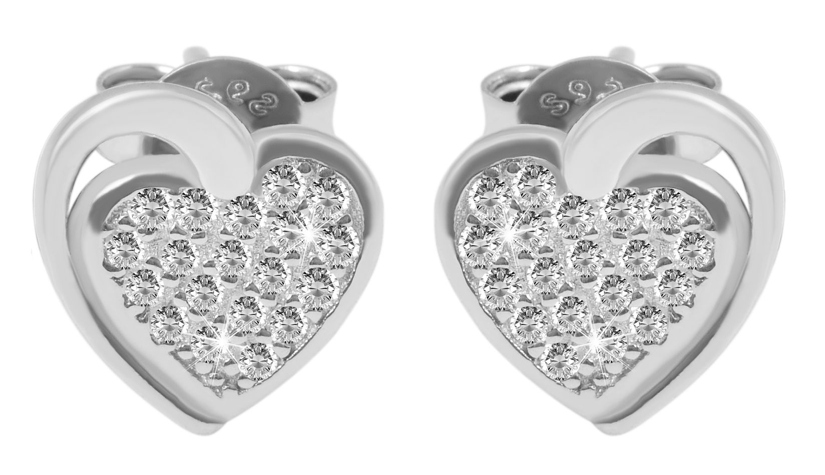 De oorstekers in een asymmetrische hartvorm zijn elk bezet met 19 zirkonia steentjes. Ze hebben een lengte van 10,5 mm en een dikte van 2 mm. De oorstekers kunnen stevig aan het oorgat worden bevestigd met een vleugelschroef. De bijpassende hanger kan prachtig gecombineerd worden met de hartoorbellen of als enkel stuk gedragen worden en is versierd met 28 zirkonia steentjes, 14 mm lang en 12 mm breed met een dikte van 2 mm. Deze delicate en elegante sieradenset met een geslaagd ontwerp is een echte blikvanger en ook een uitstekend cadeau. Let op: de hanger wordt geleverd ZONDER ketting.
