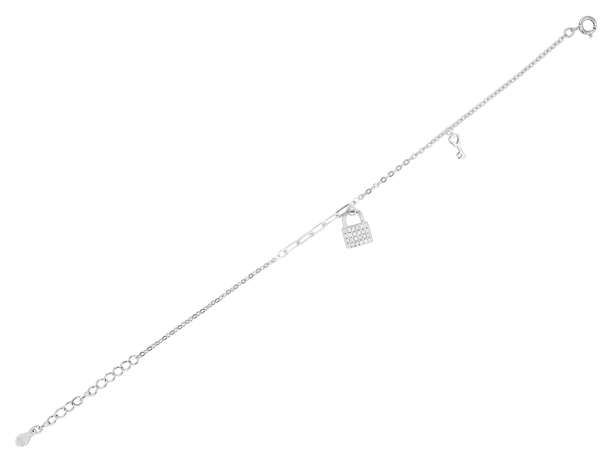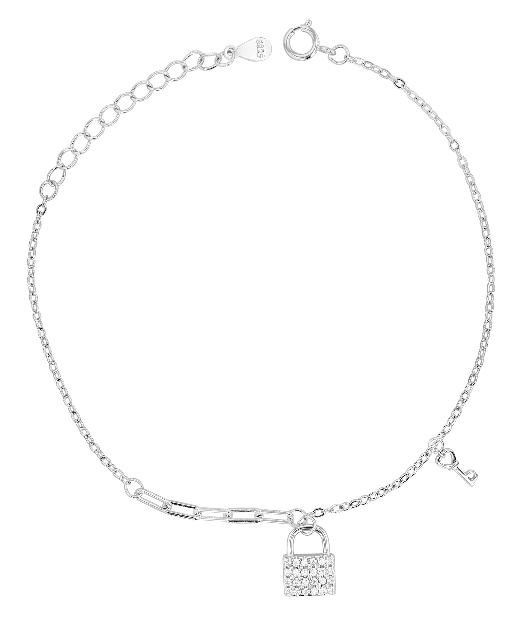 Deze betoverende armband van hoogwaardig 925 sterling zilver is het perfecte accessoire voor elke gelegenheid, als dagelijkse metgezel of als expressief detail voor speciale gelegenheden. Met een totale lengte van 17 cm en een praktisch verlengstuk kan het sieraad individueel worden aangepast. Het tussenstuk is een bijzondere blikvanger: een opvallende ankerketting van 2,5 cm, die in combinatie met de twee delicate hangers - een slot met zirkonia steentjes en een sleutel - dit tot een stijlvol en tijdloos sieraad maakt. Het staat symbool voor verbinding en vertrouwen en is een ideaal cadeau voor een heel speciaal persoon.