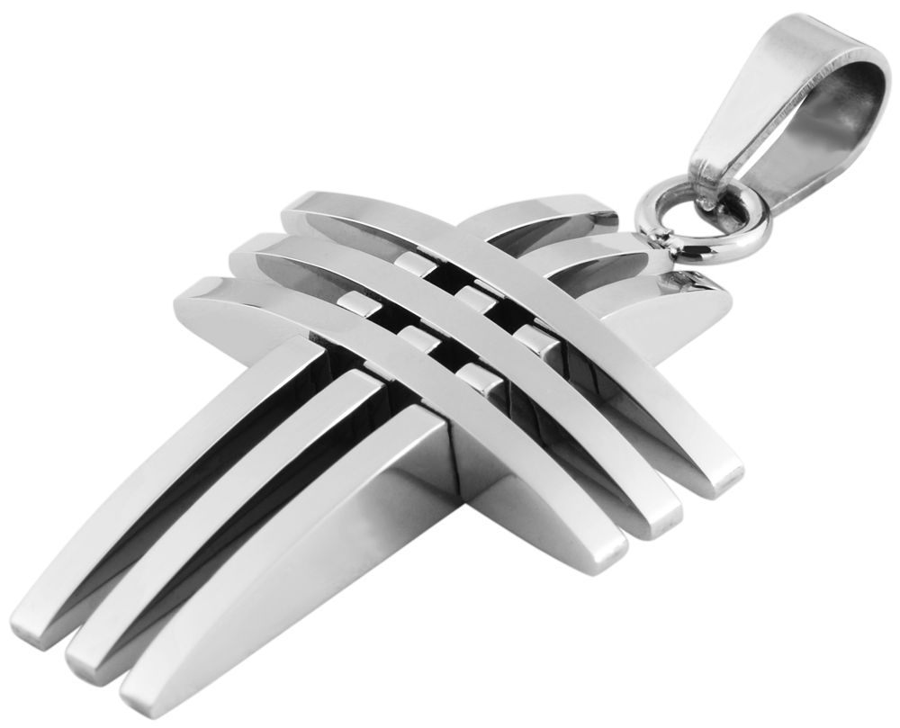 De hanger van het merk Akzent in de vorm van een kruis is gemaakt van roestvrij staal. De roestvrijstalen hanger is zilverkleurig. Het kruis bestaat uit drie staven, zowel verticaal als horizontaal. De hanger is 32 mm lang, 22 mm breed en 5 mm dik.