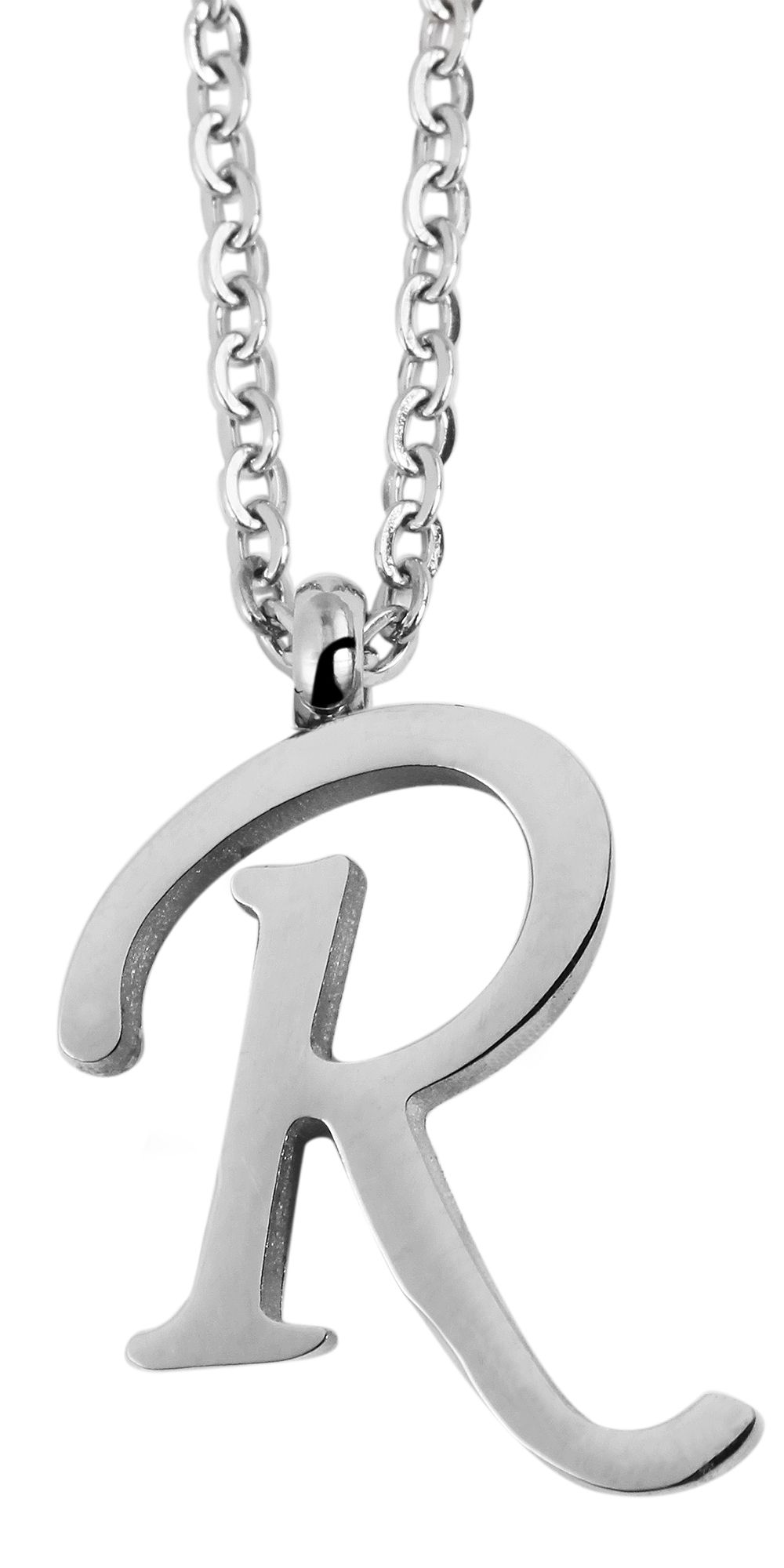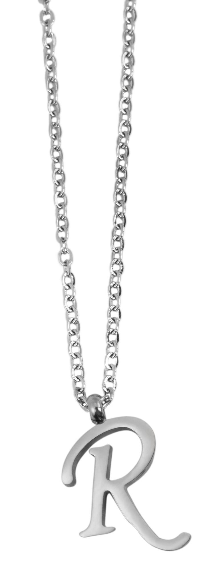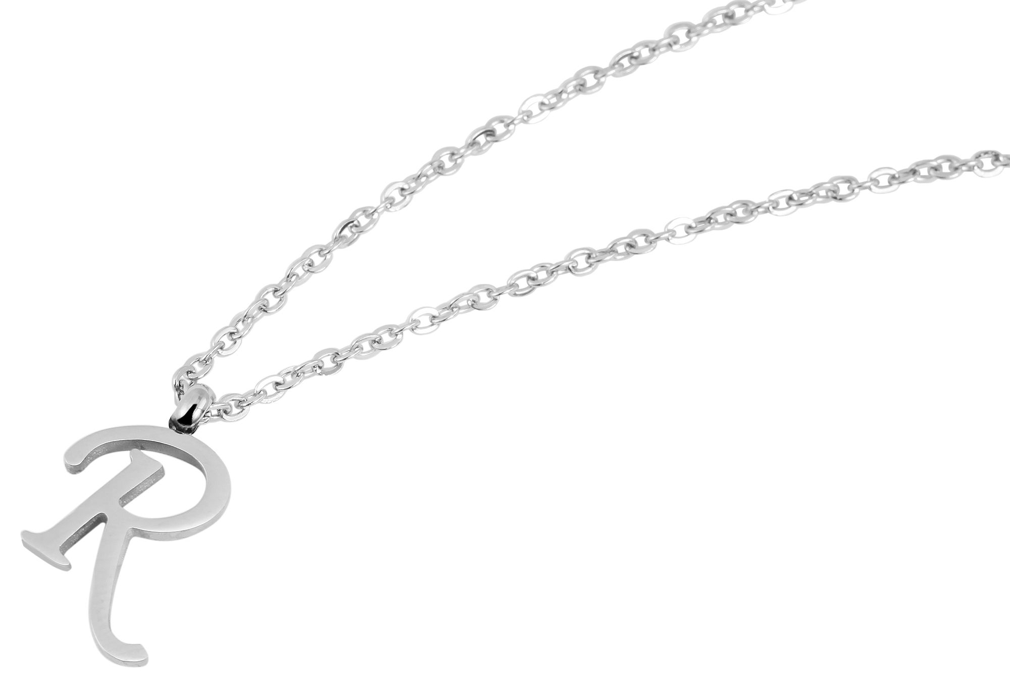 Productinformatie ""Kiah", accent ankerketting roestvrij staal, zilverkleurig, letterhanger R, 43 cm"