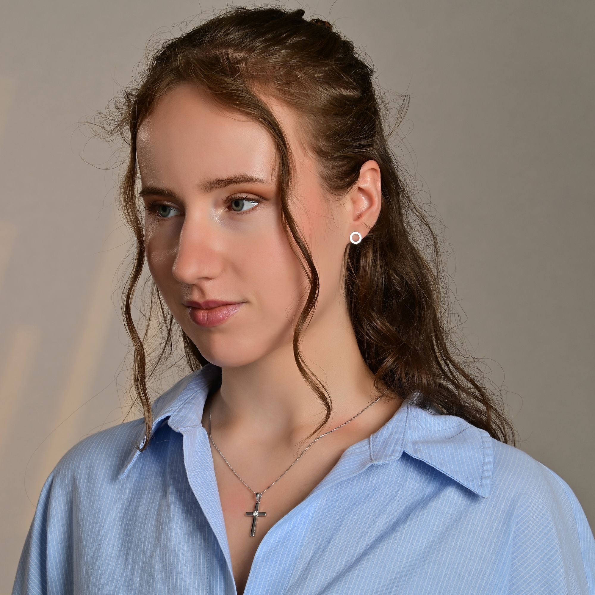 De zilverkleurige oorstekers van het merk Akzent zijn gemaakt van roestvrij staal en hebben de vorm van een cirkel die in het midden open is. De oorstekers kunnen worden geopend en gesloten met een vleugelschroef. De meegeleverde siliconen comfort-oormoeren zorgen voor extra grip. Het oppervlak is gepolijst, waardoor de moderne oorsieraden een bijzondere blikvanger zijn. De afmetingen komen voort uit een diameter van 8 mm en een dikte van 1 mm.