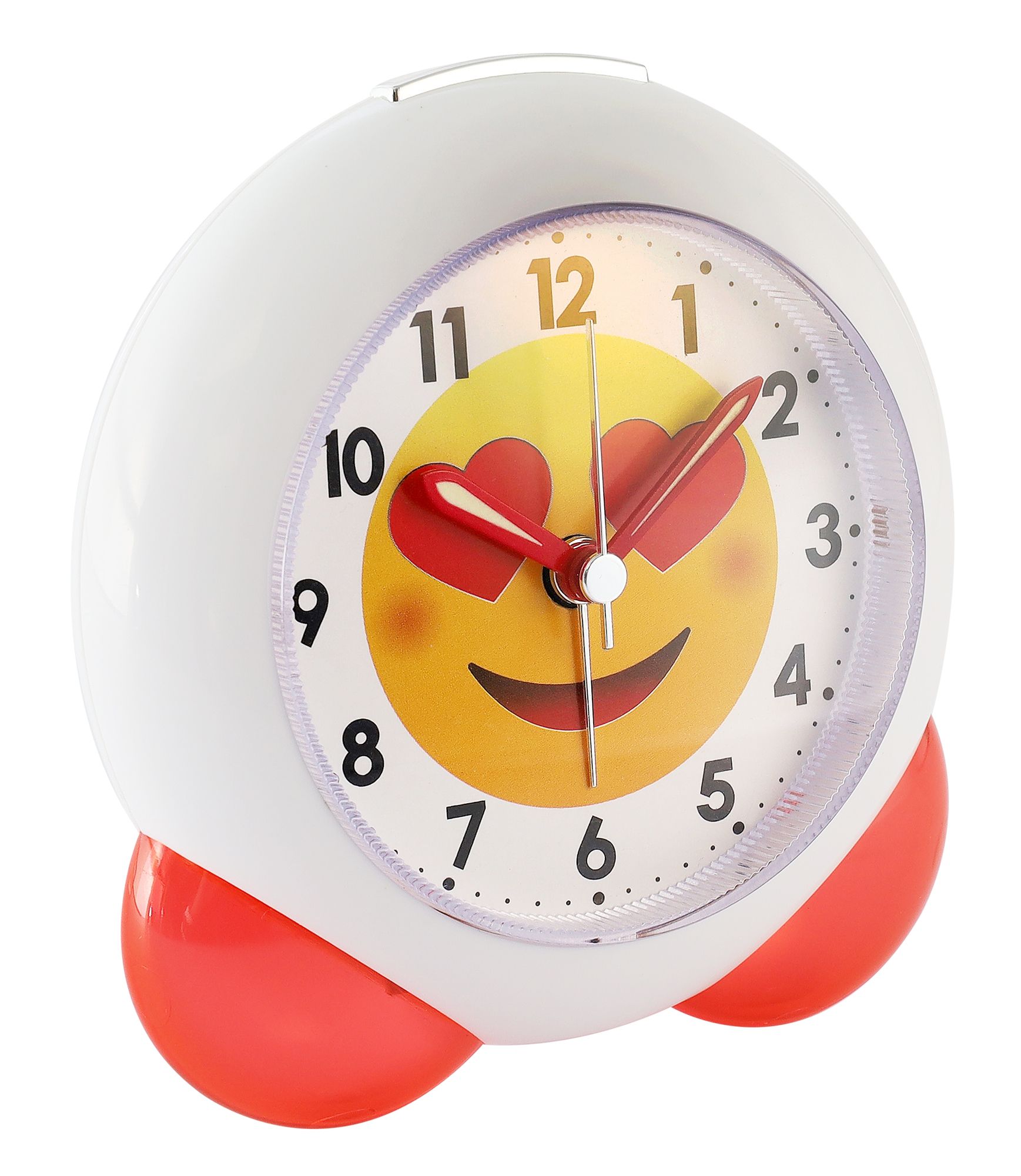 Onze Atlanta kinderwekker is niet alleen een betrouwbaar uurwerk, maar ook een spannend en leuk accessoire voor elke kinderkamer. Met afmetingen van 10,5 x 10,5 x 3,4 cm is deze wekker compact en past hij perfect op elk nachtkastje of bureau. De unieke wijzerplaat is versierd met een emoji met hartjesogen die een glimlach op kindergezichtjes tovert. Dit speelse ontwerp maakt de wekker tot een echte blikvanger die kinderen van alle leeftijden in verrukking zal brengen. Naast het charmante uiterlijk heeft de kinderwekker ook een kruipende seconde, wat betekent dat de wijzers geruisloos en zonder hinderlijk getik vooruit gaan. De repeteerfunctie zorgt ervoor dat het kind nooit te laat komt voor zijn activiteiten.