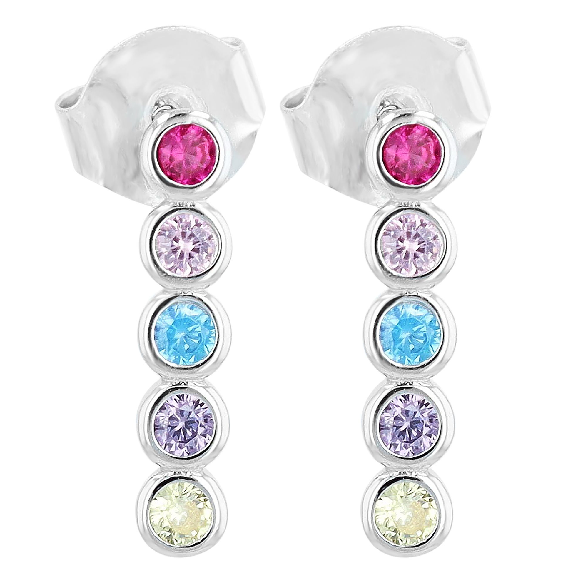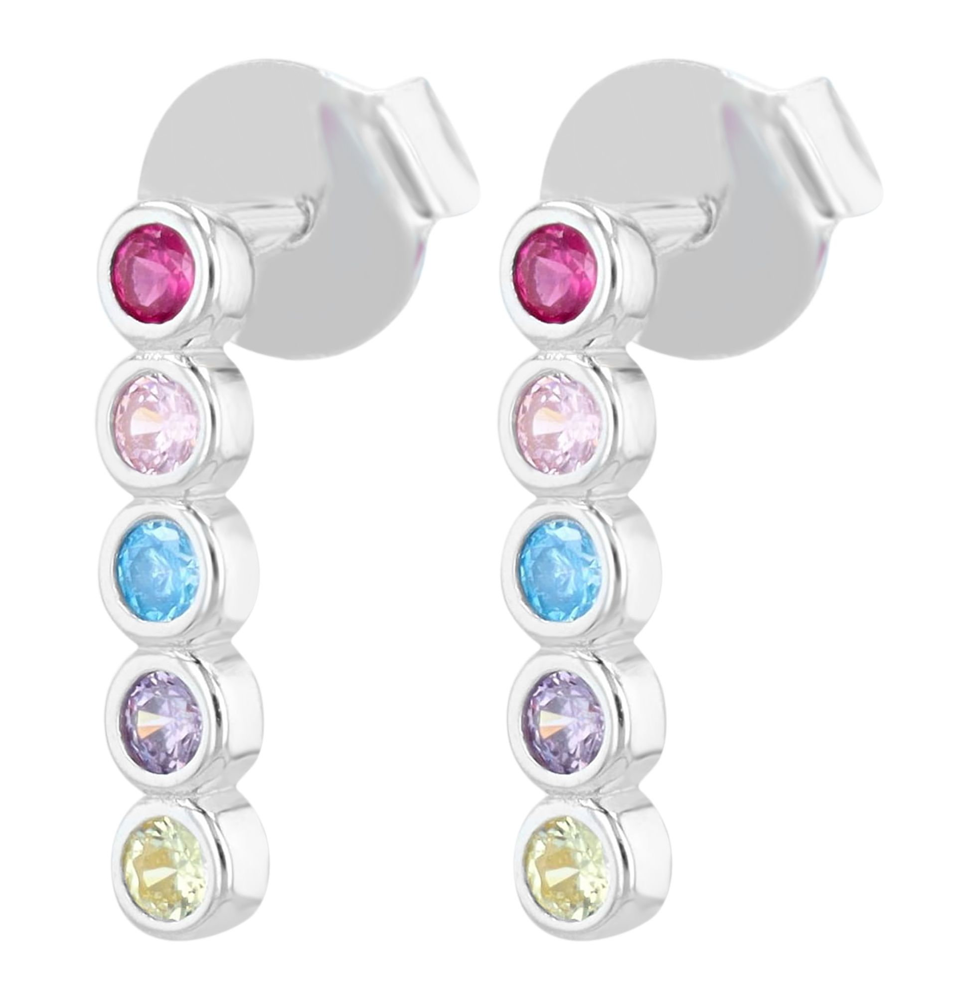 "Kira" staat voor speelsheid, kleurrijkheid en lichtheid. "Kira" is een betoverende kleine oorsteker gemaakt van 925/- echt zilver, gezet met een reeks van 5 gekleurde rondgeslepen zirkonia's per oorsteker. Het gepolijste en gerhodineerde zilver dat de stenen omringt, zorgt voor een prachtig contrast en voegt een zekere elegantie en speelsheid toe. Met een lengte van 1,4 cm en een breedte van 0,3 cm is "Kira" perfect voor romantische avonden, op kantoor of in je vrije tijd en absoluut tijdloos dankzij het ontwerp en het materiaal. Deze oorsteker zal vrouwen en meisjes van alle leeftijden lang plezier brengen.
