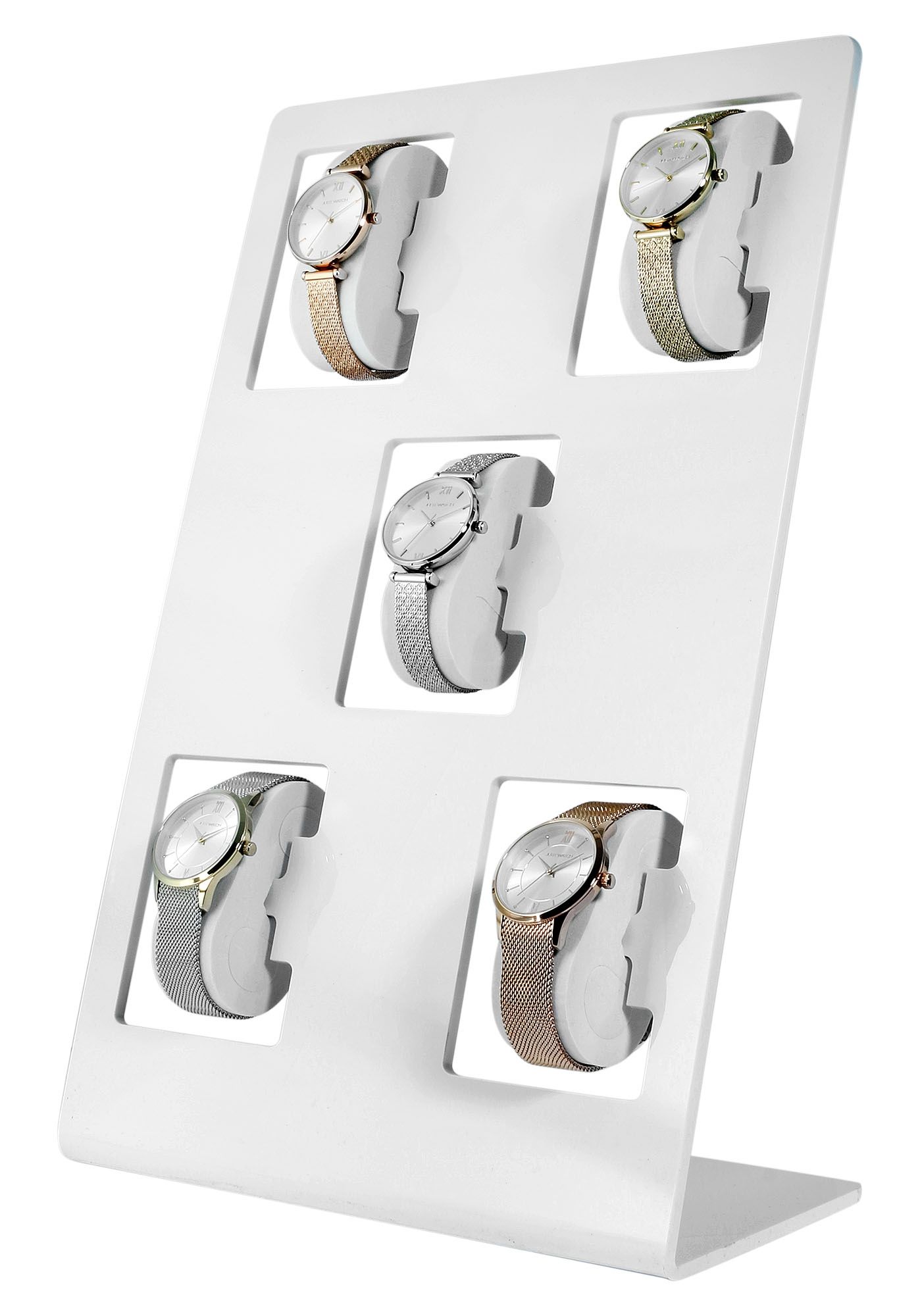 Wil je je horlogecollectie op een stijlvolle en effectieve manier presenteren? Ons horlogedisplay van hoogglans kunststof is de ideale oplossing. Met zijn innovatieve opstelling accentueert hij elk afzonderlijk sieraad en maakt er een blikvanger van.
