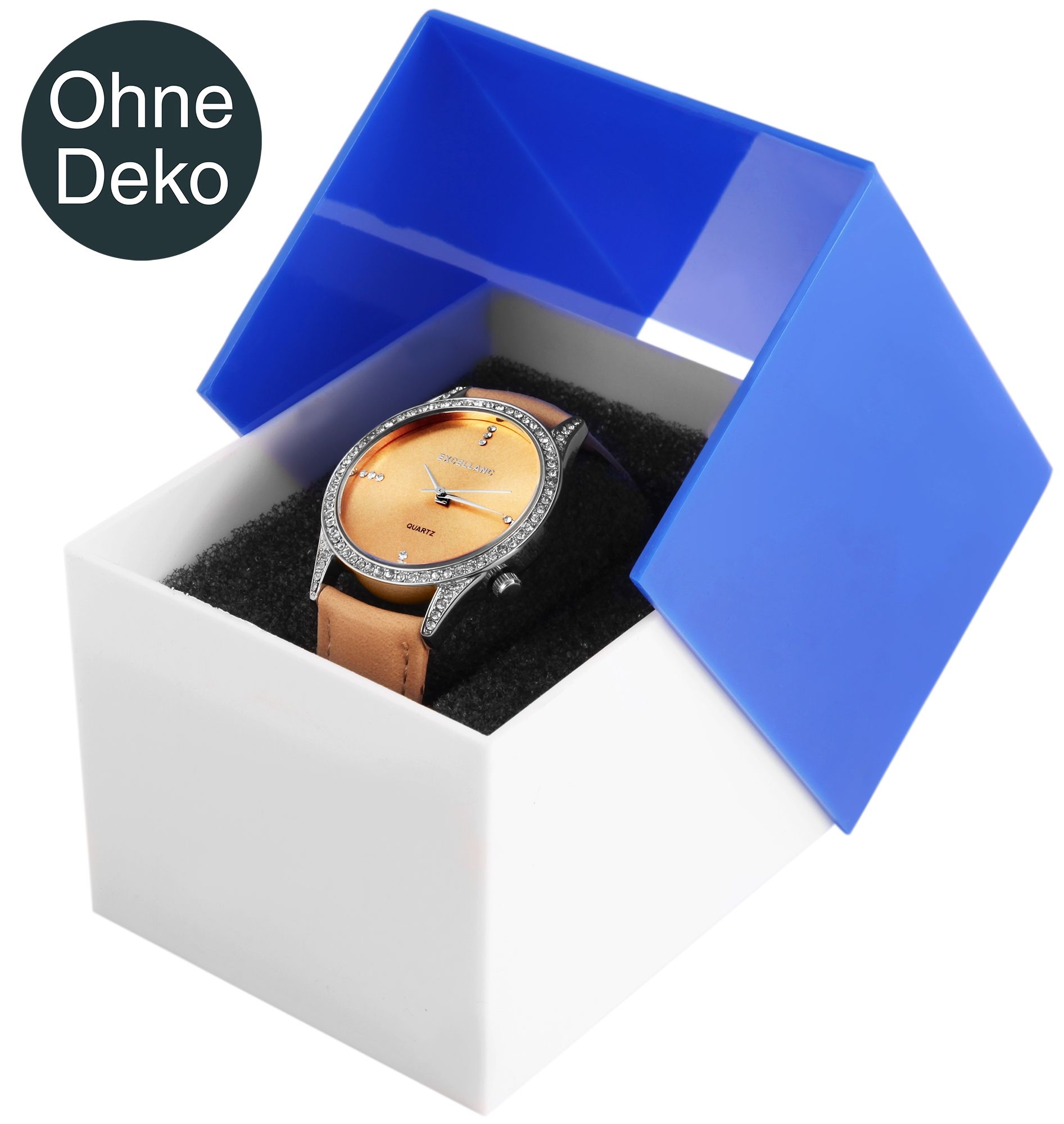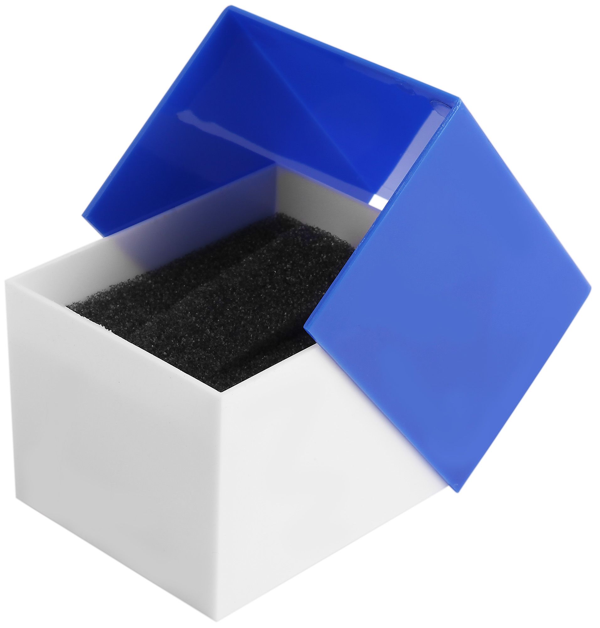 Productinformatie "Kunststof horlogebox, wit/blauw, klapdeksel, PU 12, 9,9 cm x 8,1 cm x 6,8 cm"