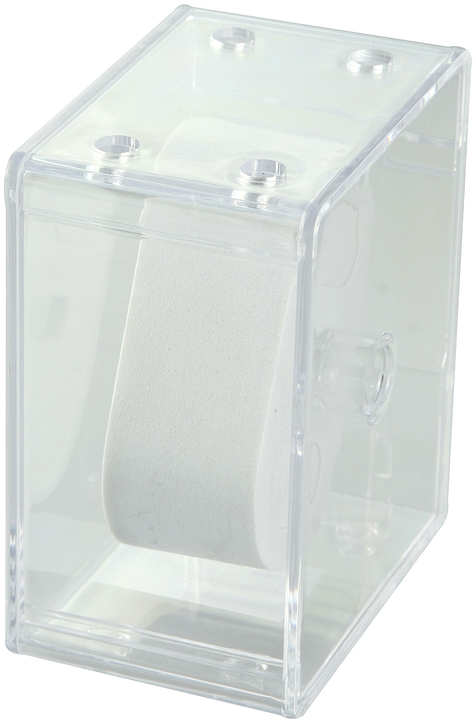 De kunststof horlogebox biedt een ideale opberg- en presentatiemogelijkheid voor een polshorloge. Het horloge is goed zichtbaar dankzij het transparante materiaal. De doos is 85 mm lang, 56 mm breed en 105 mm hoog. Een wit schuimkussen zorgt ervoor dat het horloge in de doos gepresenteerd kan worden. De verpakking kan worden geopend door simpelweg de twee zijkanten uit elkaar te trekken. Een hanger met ronde gaten maakt het horlogedoosje geschikt voor eventuele haken of andere presentatiemogelijkheden om op te hangen. Het is ook mogelijk om meerdere doosjes te stapelen.