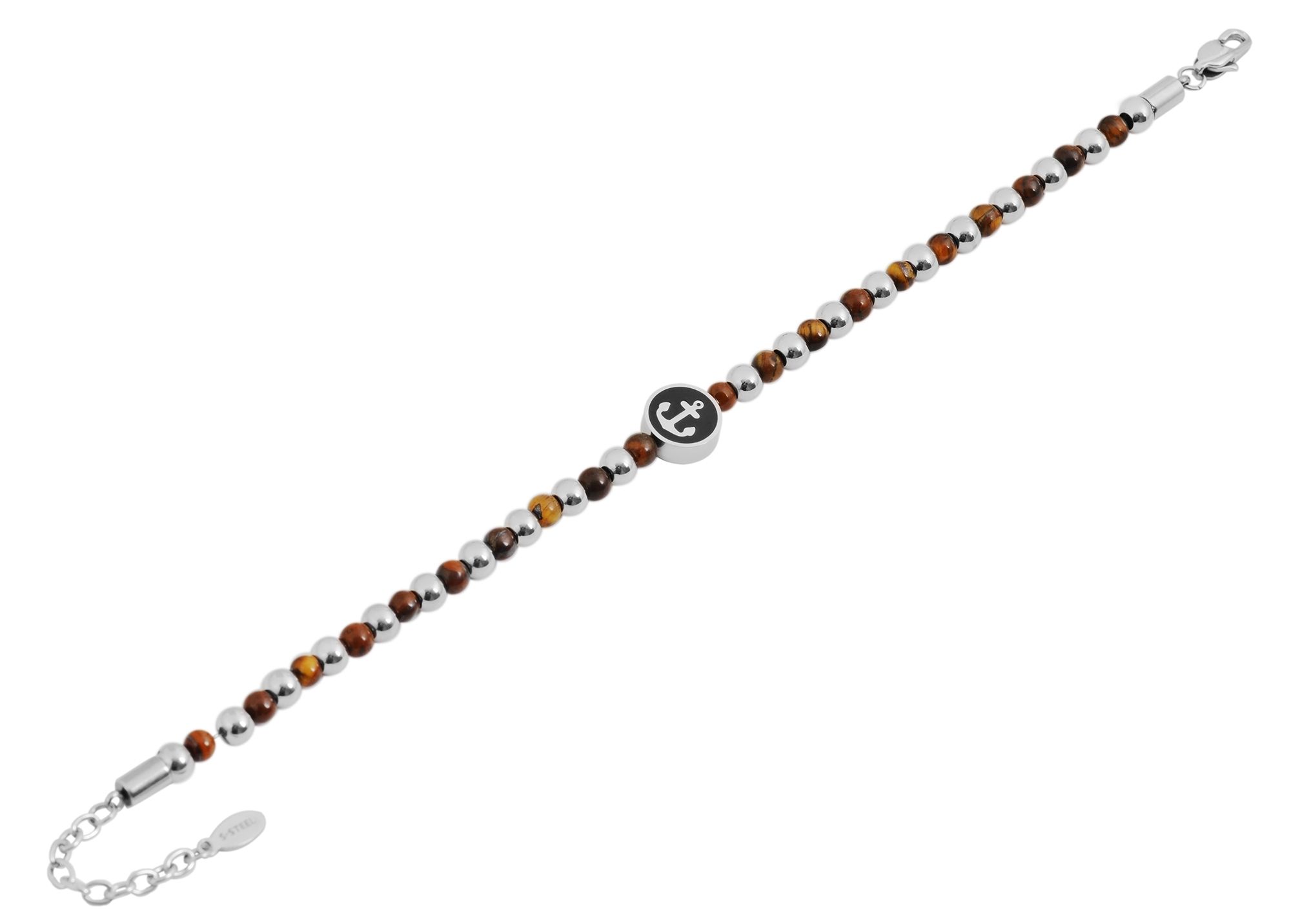 Productinformatie ""Kyano" Kugelarmband aus Edelstahl, maritim, braun/silberfarben 19 + 3 cm"