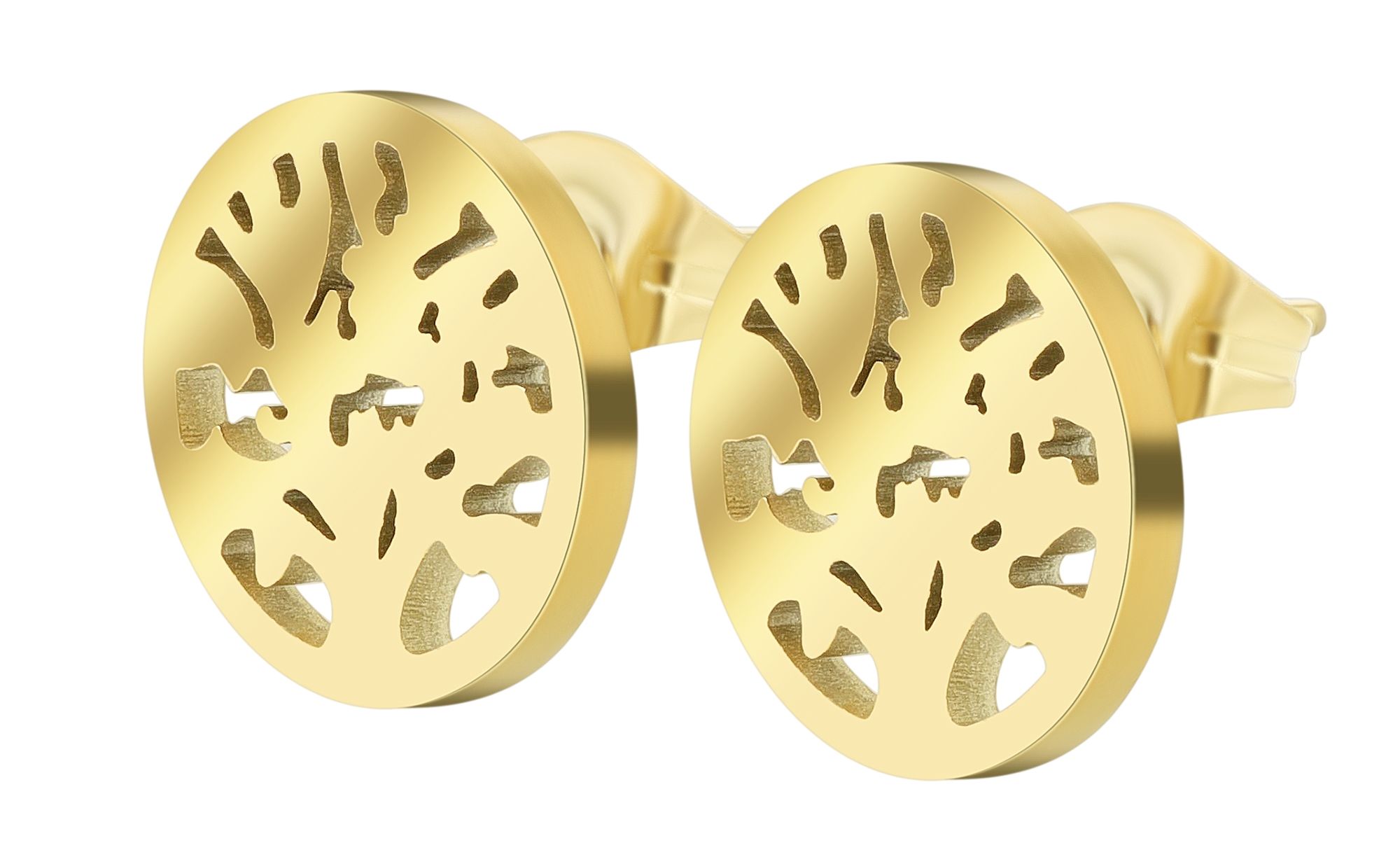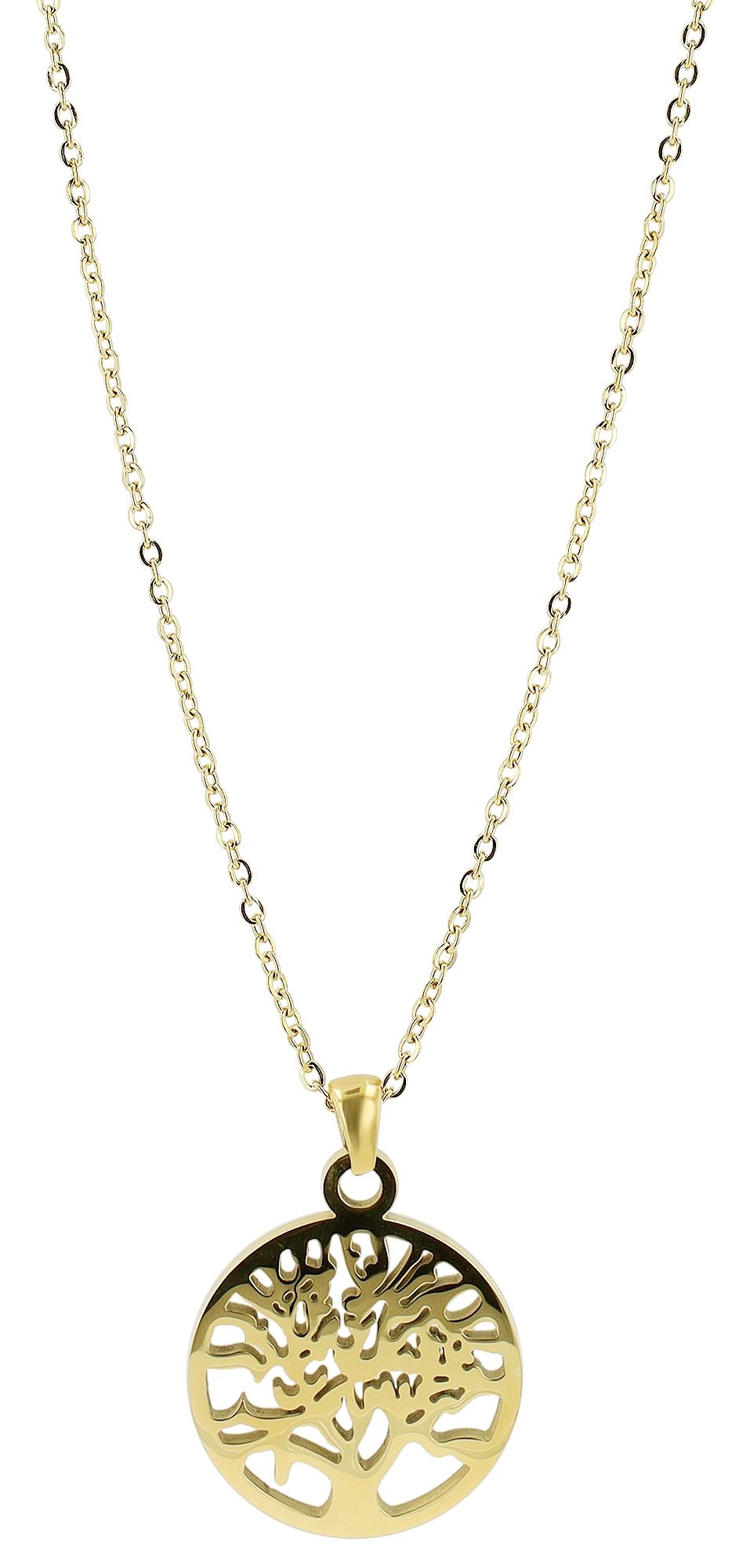 Productinformatie ""Lanai", accent roestvrijstalen levensboom sieradenset, ketting & oorbellen, goudkleurig"