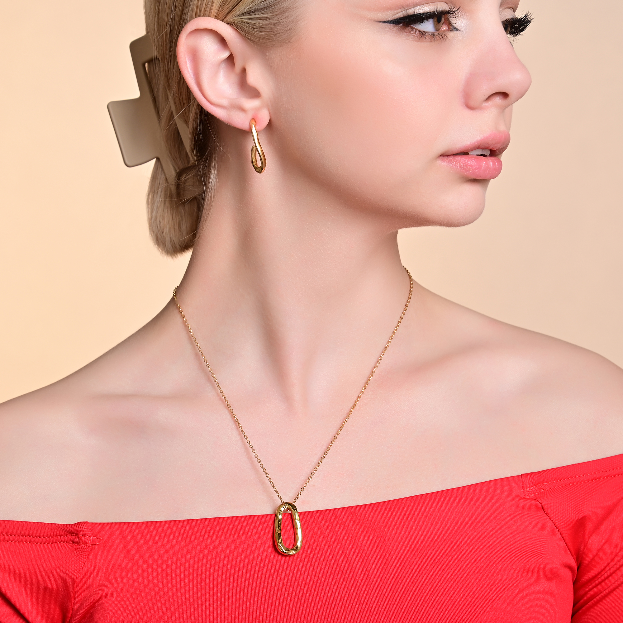 Productinformatie ""Leila" Edelstahl Schmuckset mit Ohrsteckern und Anhänger, goldfarben"