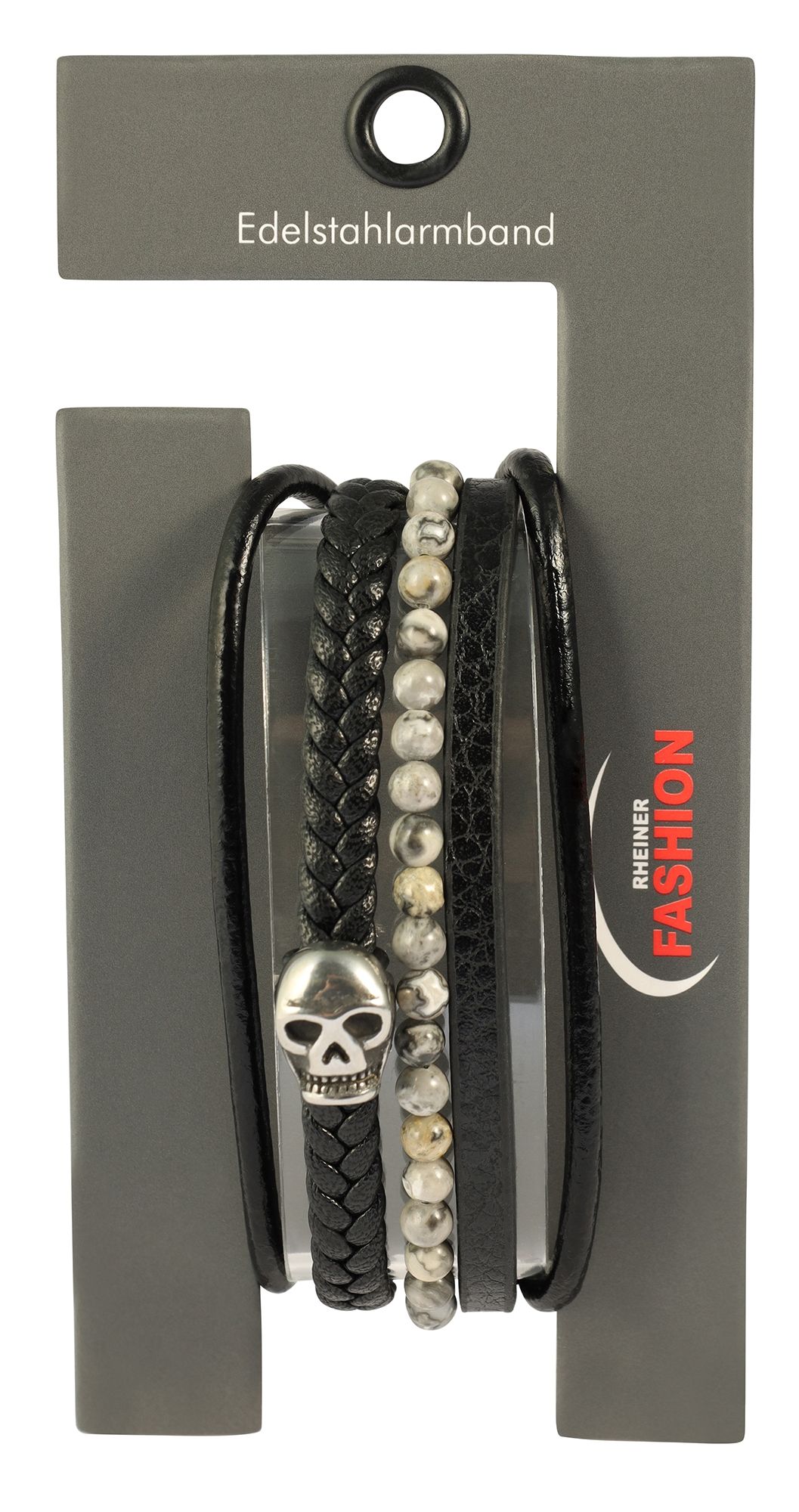 Productinformatie ""Lennie" Totenkopf, 17 cm, Armband aus Lederimitat mit grauem Jaspis, 4-VE"