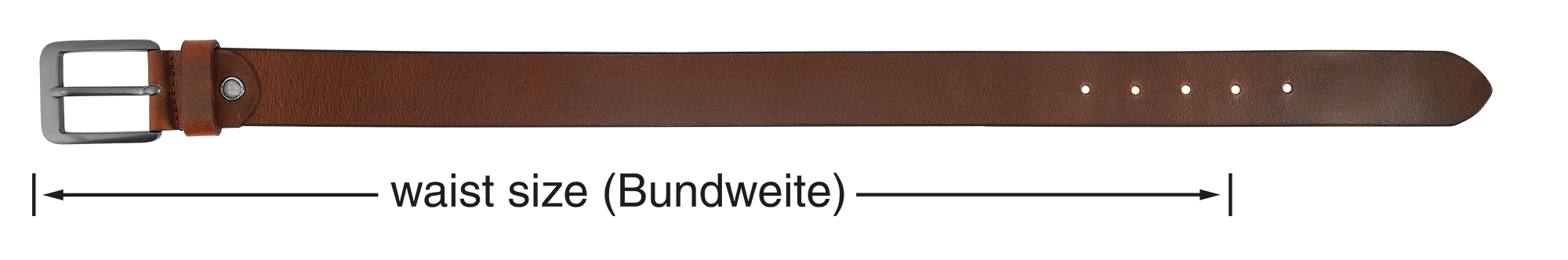 Deze bruine riem van het merk Leonardo Verrelli is gemaakt van generfd rundleer en heeft een gladde afwerking met een subtiele nerf. Hij heeft een taillewijdte van 110 cm, is 3,8 cm breed en 0,3 cm dik. De gaten zitten 2,5 cm uit elkaar. Dit maakt de leren riem veelzijdig, omdat hij gemakkelijk door de gebruikelijke riemlussen kan worden gehaald. Dankzij het hoogwaardige, natuurlijke materiaal is deze riem bijzonder robuust, duurzaam en scheurbestendig, waardoor het de ideale metgezel is voor alle gelegenheden. De metalen gesp wordt bevestigd met een schroef, waardoor de riem gemakkelijk kan worden ingekort en aangepast aan elke tailleomvang. De maat van de riem wordt aangegeven in taillebreedte, die 15 cm korter is dan de totale lengte.