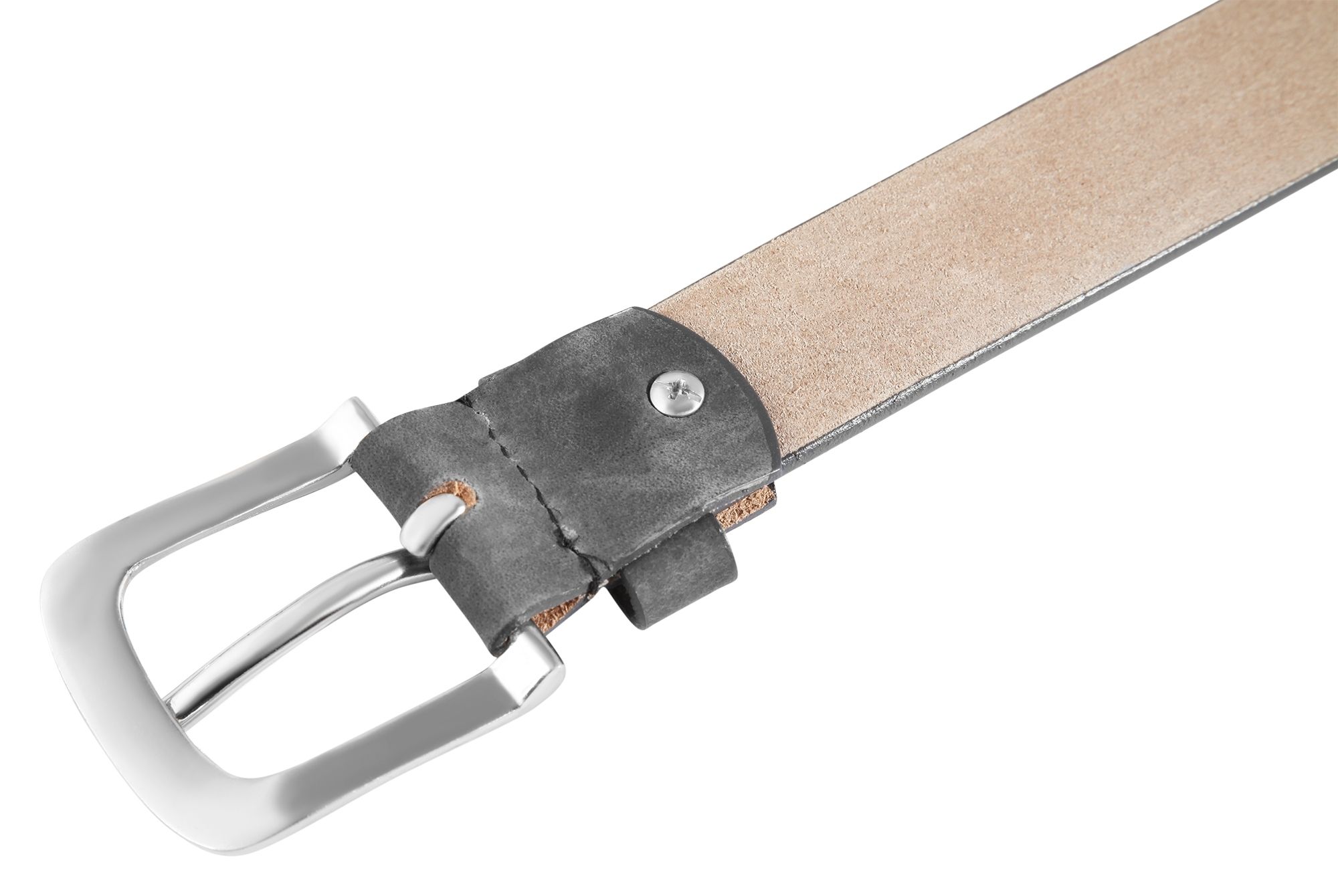 De grijze riem van het merk Leonardo Verrelli is gemaakt van echt leer en heeft een glad, fluweelzacht oppervlak. De riem is 3,4 cm breed en heeft een dikte van 4 mm. De riem heeft een taillemaat van 85 cm. De riem heeft een zilverkleurige metalen gesp die met de hand is genaaid. De gaten voor de speld zitten 2 cm uit elkaar. De riem is een mooie casual riem die gemakkelijk gecombineerd kan worden. De riem kan worden ingekort.