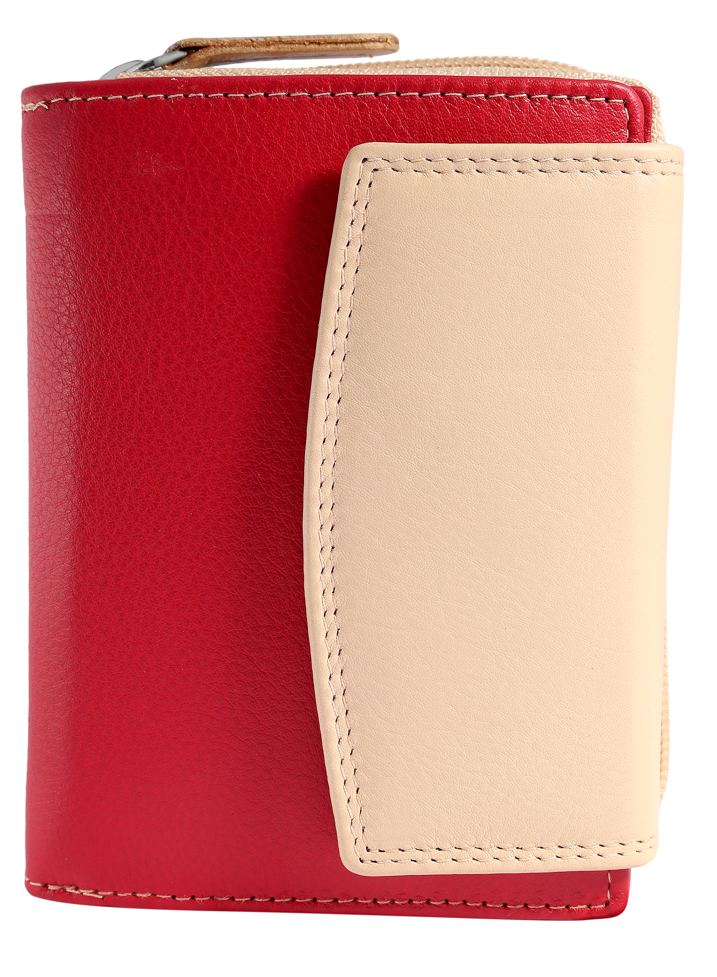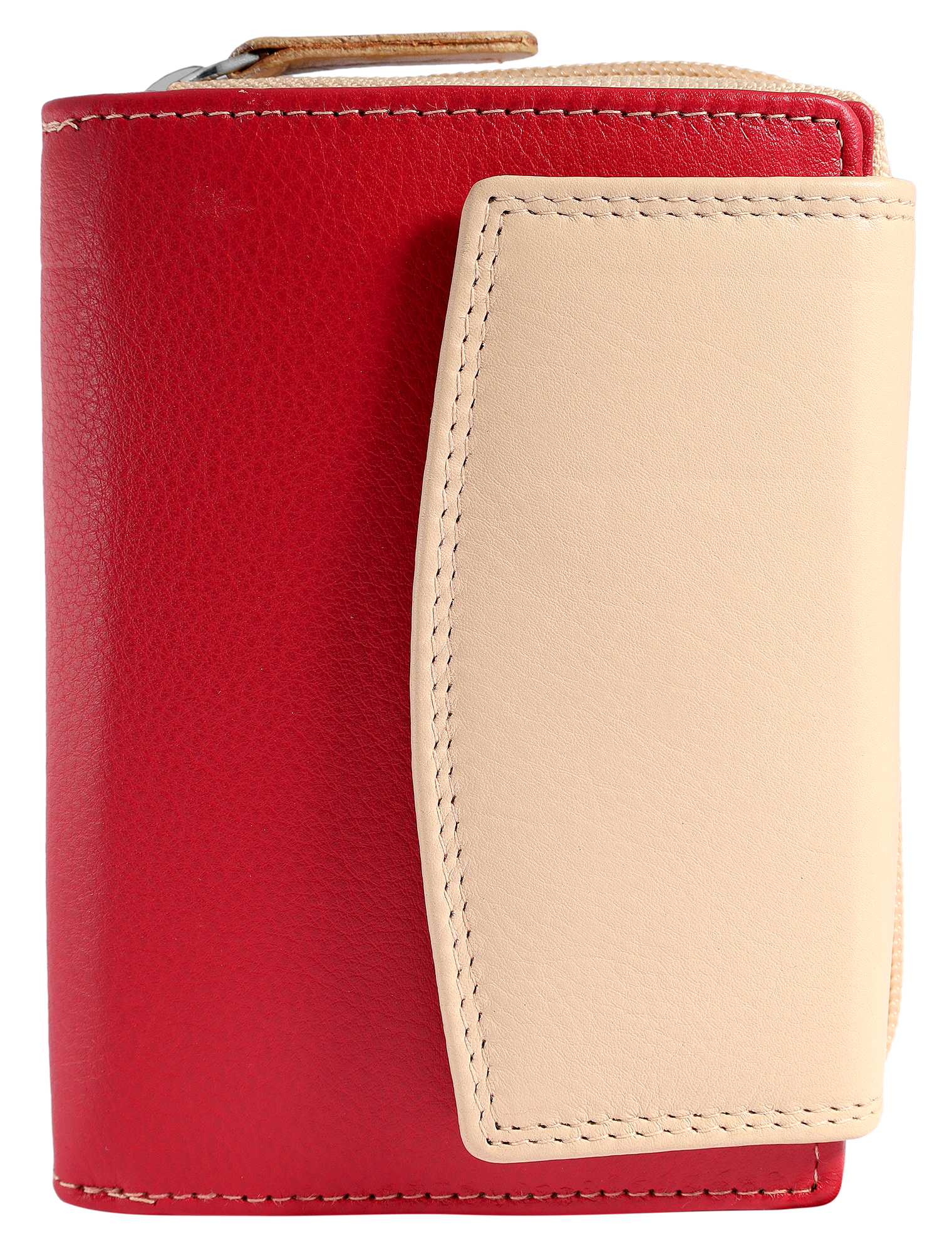 Deze tweekleurige damesportemonnee van hoogwaardig echt leer is een echt organisatietalent en met zijn afmetingen van ca. 13 x 10 x 4,5 cm een echte ruimtebespaarder. Het is de ultieme must-have voor de moderne vrouw die belang hecht aan organisatie en veiligheid.