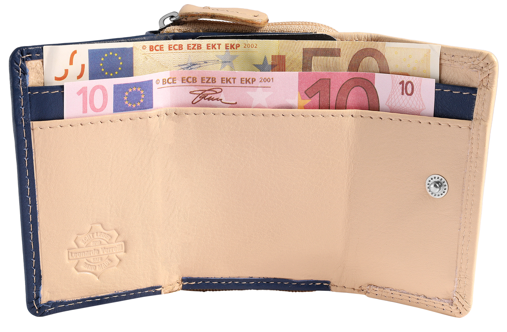 Productinformatie "Leonardo Verrelli Echtleder Damen Geldbörse, klein, Querformat, RFID, beige/ blau"