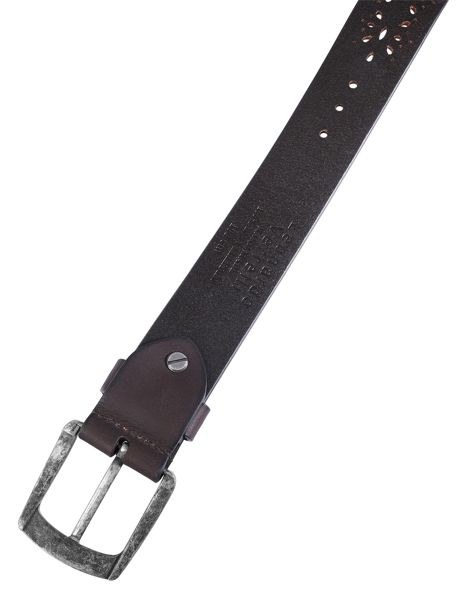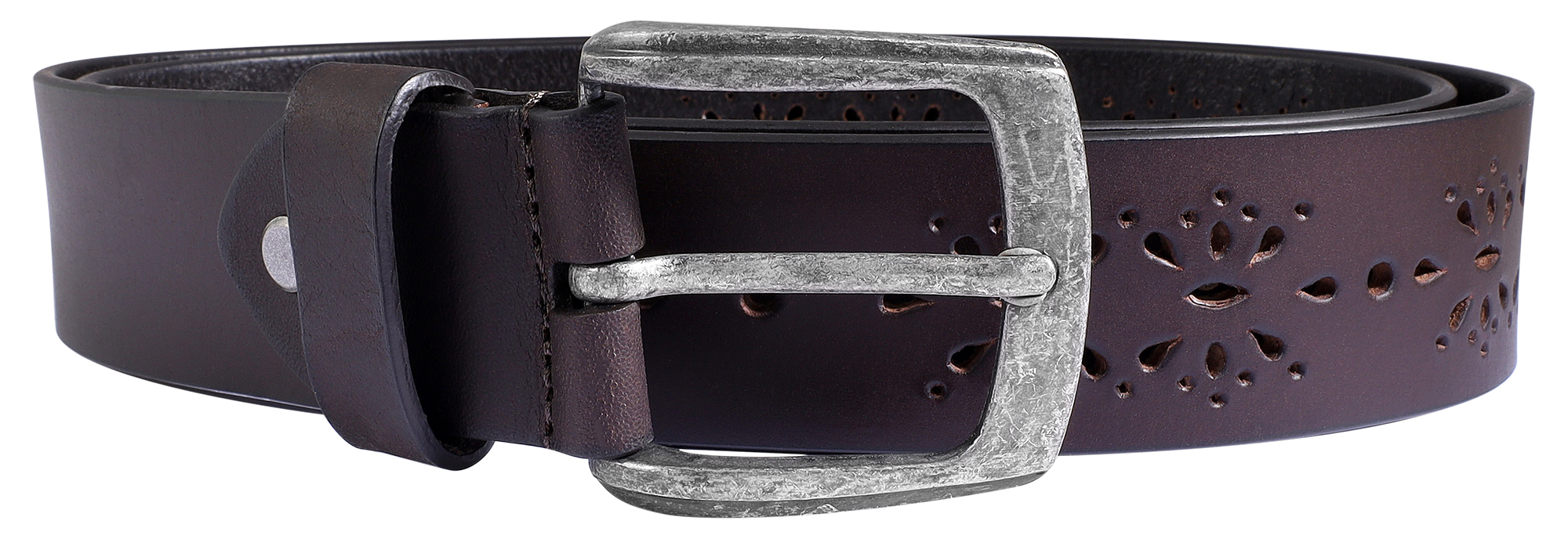 br> Gefertigt aus 100 % echtem Büffelleder, bietet dieser Gürtel eine besonders robuste Qualität und Langlebigkeit. Das gestanzte Muster (Laser-Cut-Look) des Gürtels verleiht ihm eine feminine und zugleich markenten Look. Es macht ihn zu einem echten Blickfang.