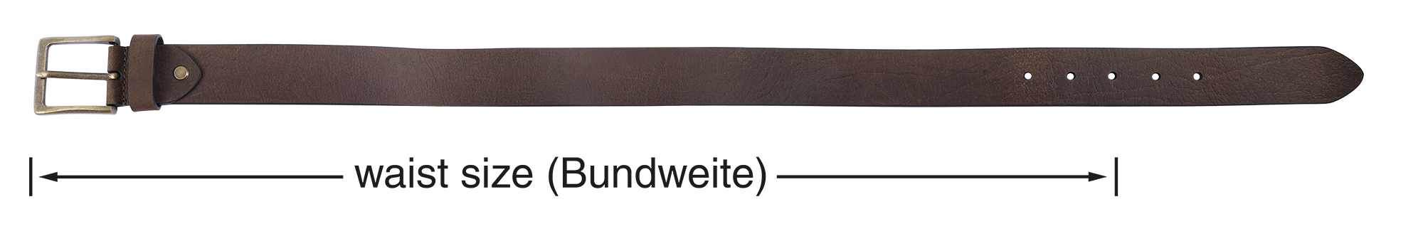 Let op: Onze riemen met gesp meten de taillemaat zonder gesp tot aan het middelste gat (+/- 5 cm). De totale lengte wordt gemeten met de gesp.